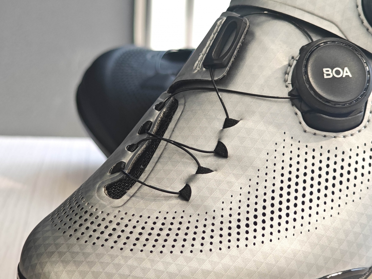 BOAダイヤルが2個になり足のつま先と甲の部分それぞれに適切なフィット感で締めつけを行うことができるので、加速時にズレが起きにくくなっています。