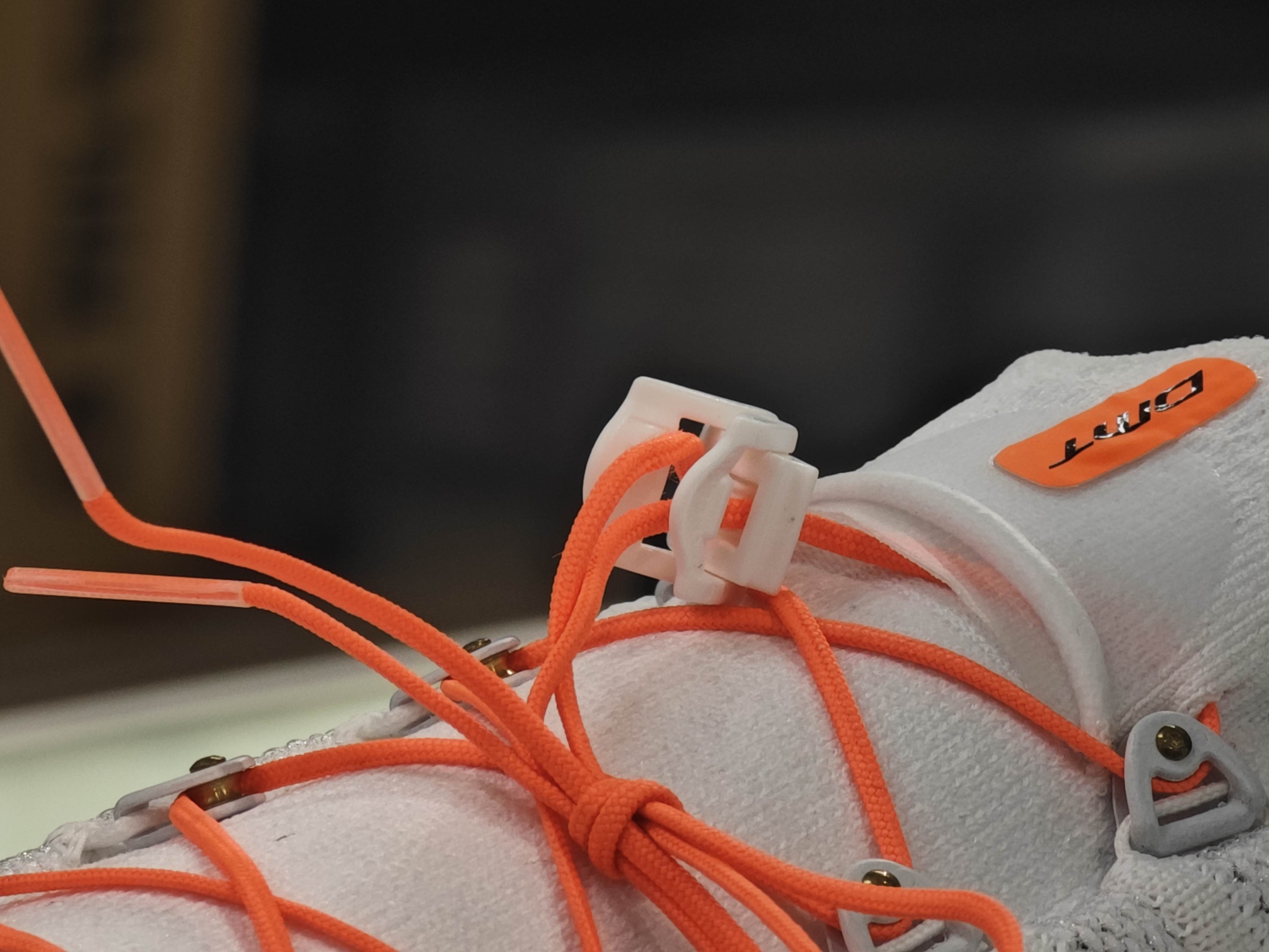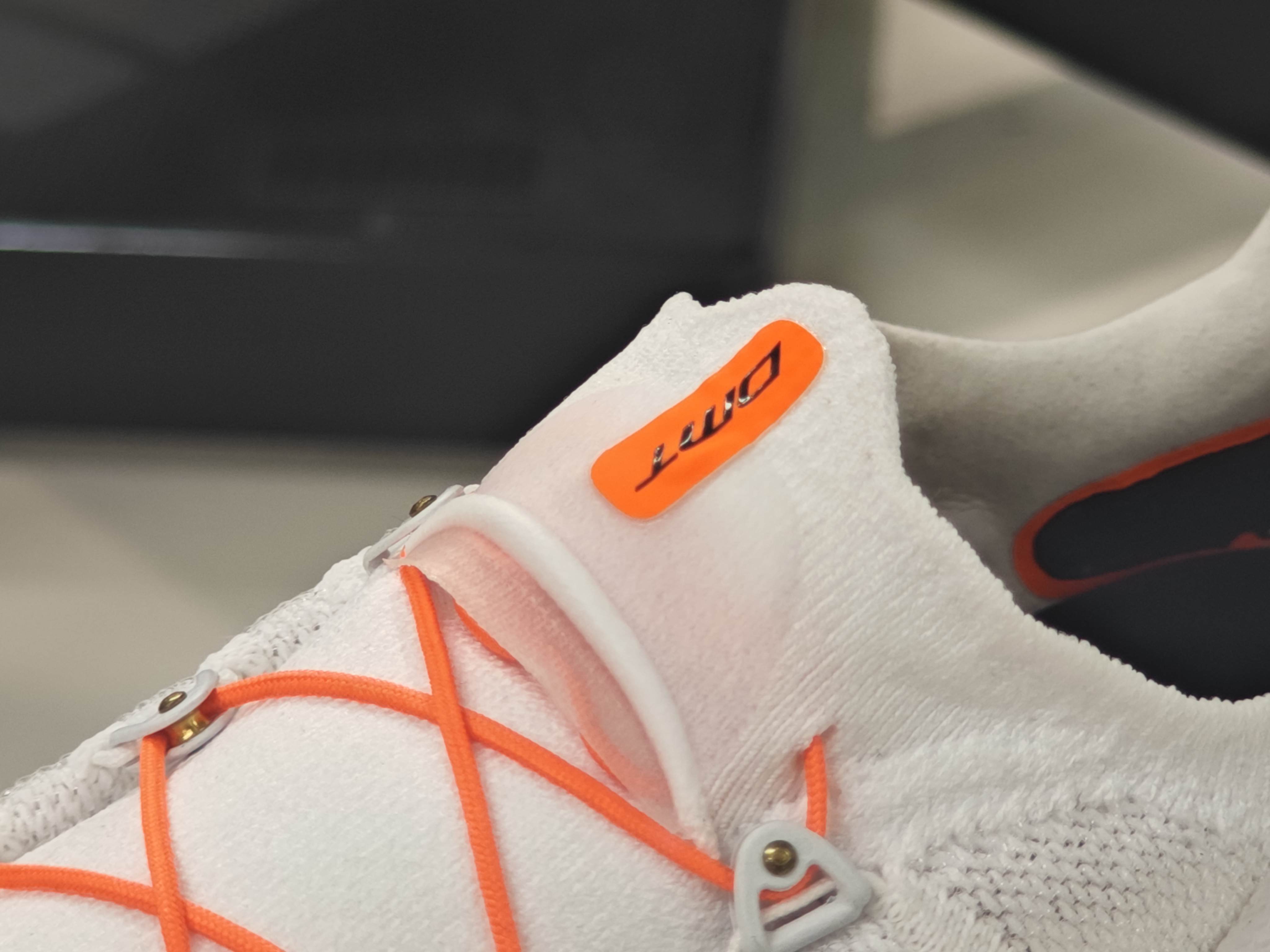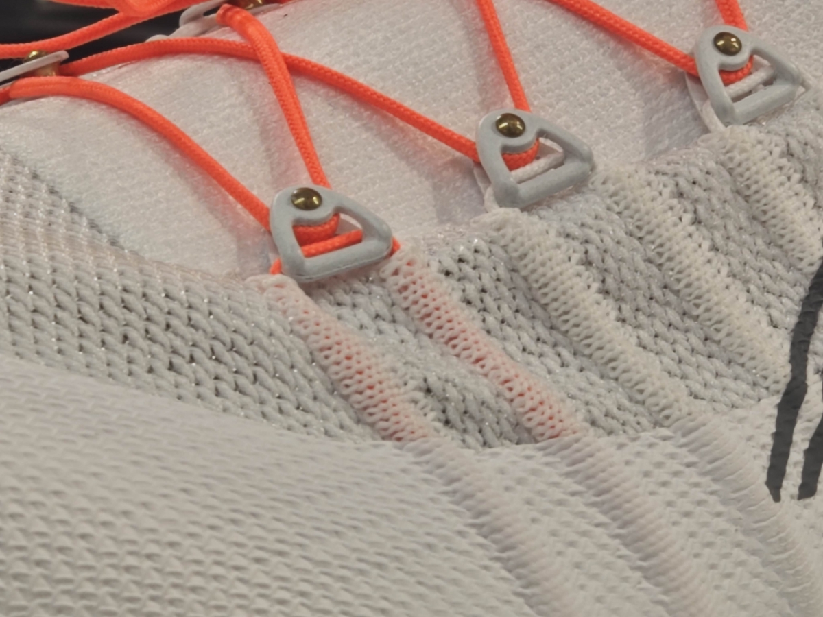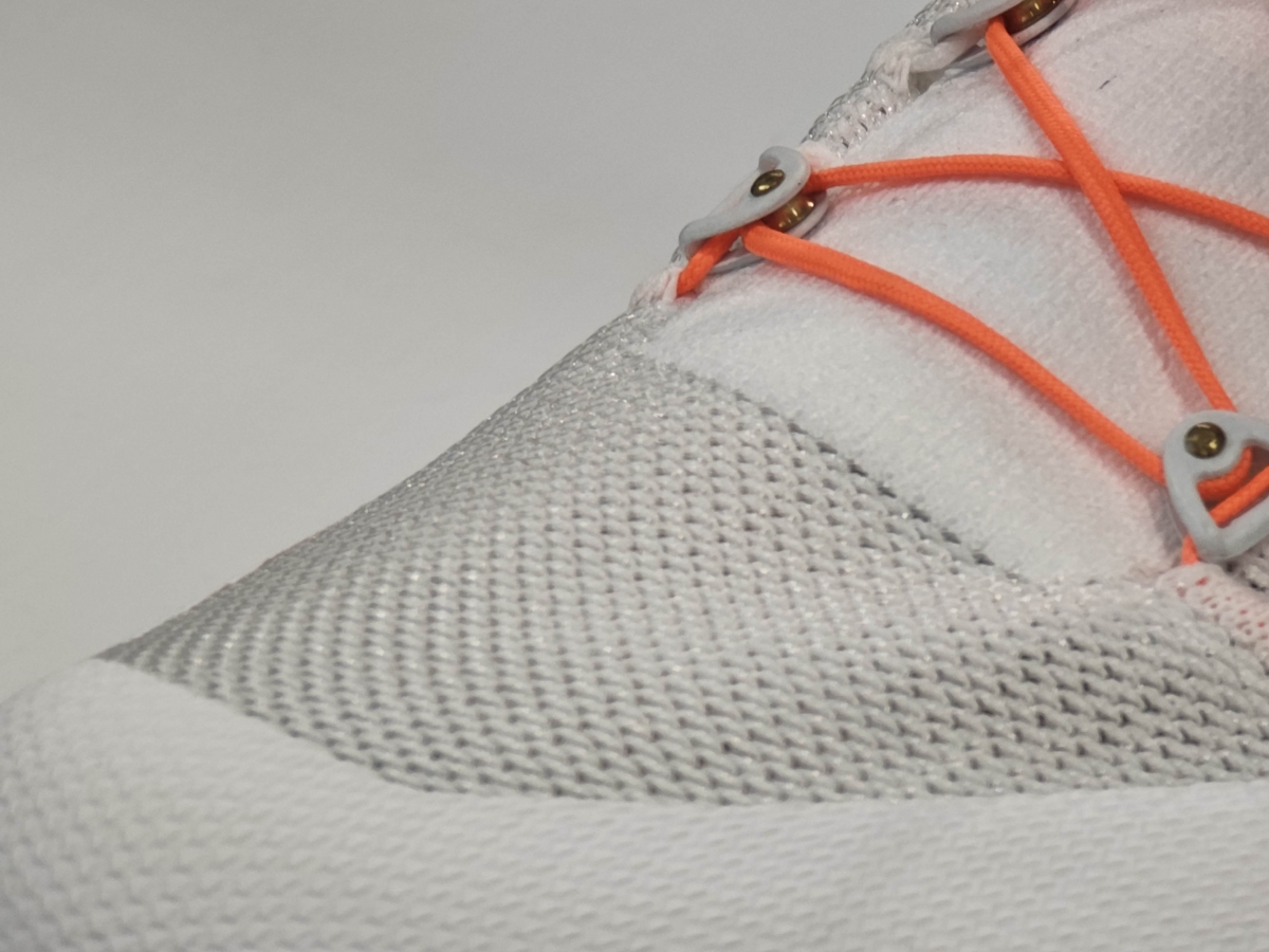 通気性の高いフルエンジニアード3Dニットアッパーは中のソックスが透けるほど薄くなっています。