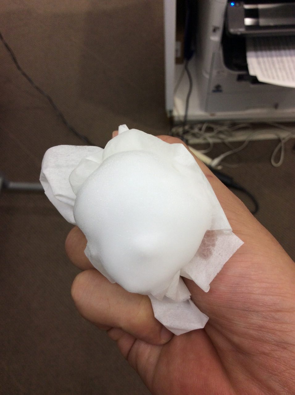 キッチンペーパーに泡をつけて擦る!!ちなみにこの泡めちゃくちゃいい匂いします。