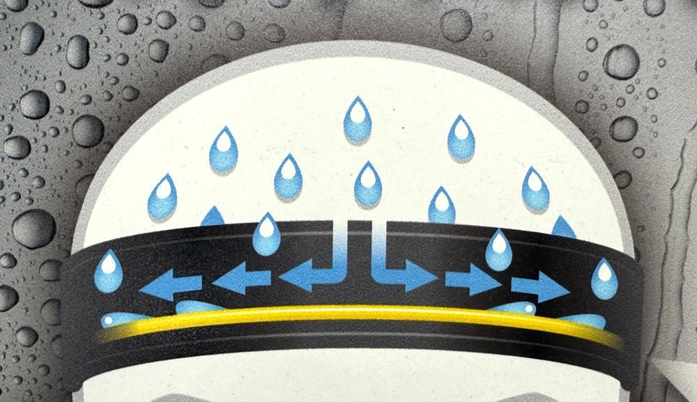 スウェットブロックシールが額に落ちてくる汗を堰き止めて左右に誘導し、シールのないサイド部分から流れ落ちるように設計されているため、垂れ落ちた汗や流れた日焼け止めが目に入るのをガッチリ防いでくれます。また、シールは柔らかく、着用時に不快感を与えないようになっています。