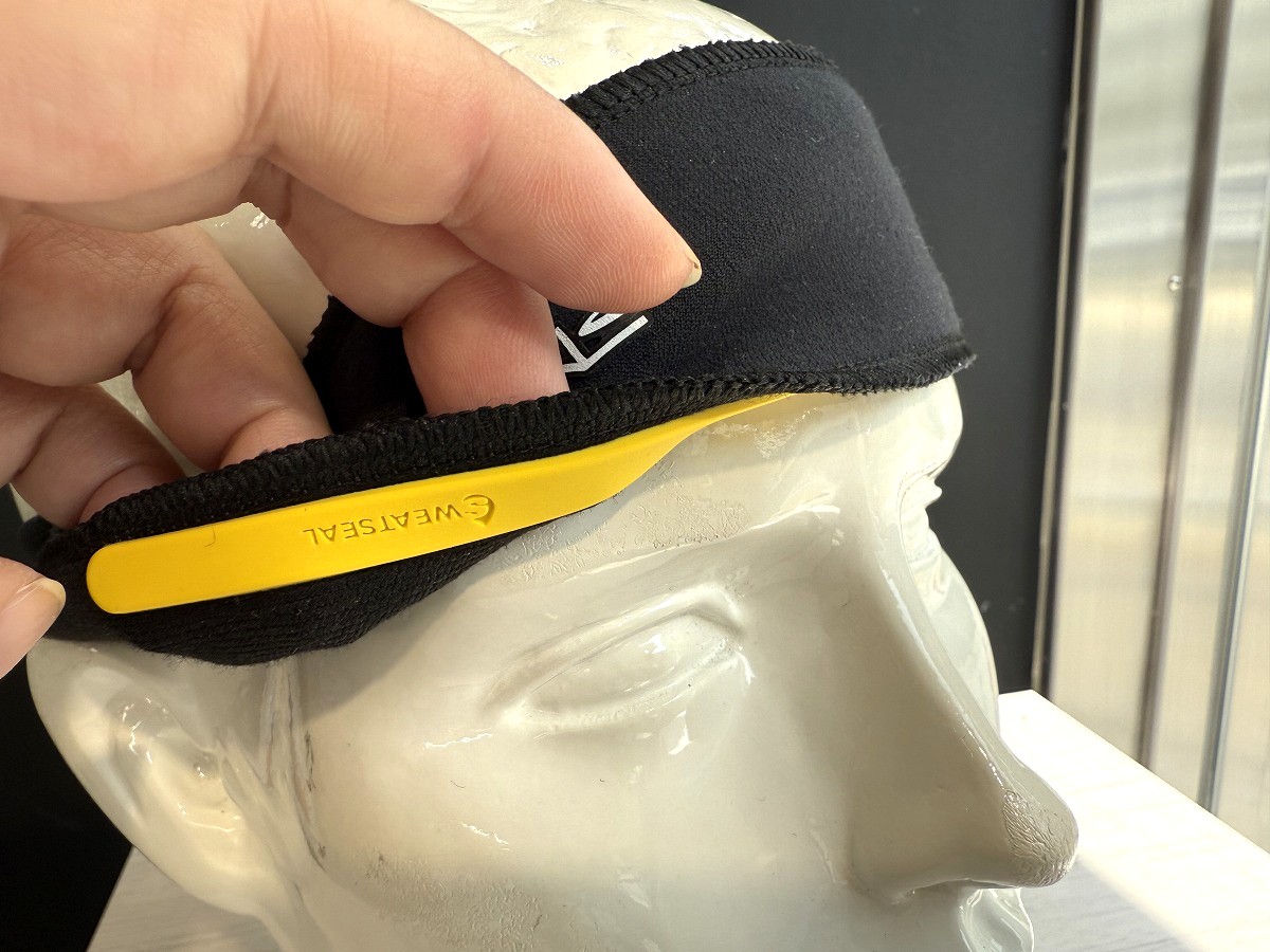 一番の特徴はヘッドバンドの内側に施されている、この黄色のゴム製のスウェットブロックシール。