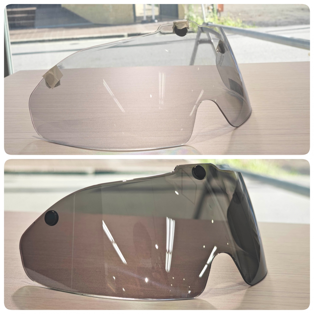 最初に付属しているシールドはライトスモークで可視光透過率65%になっており裸眼よりは断然良いのですが場合によってはまだ眩しいかもしれません、そこで別売りのシルバーミラーに交換することにより強い日差しにも対応ができます。