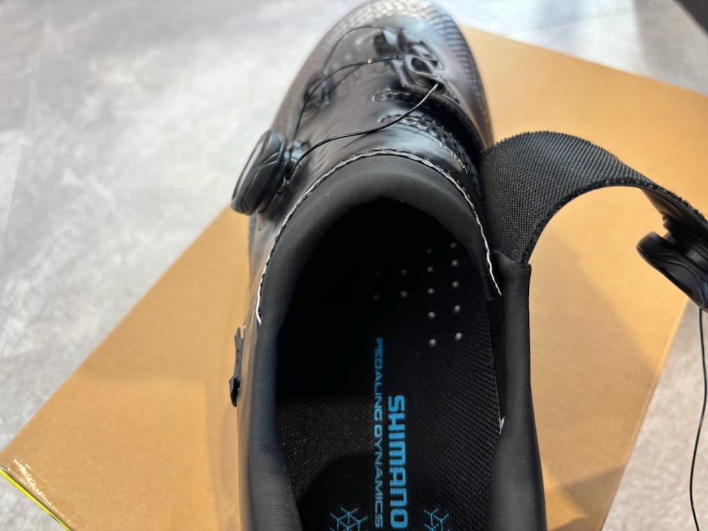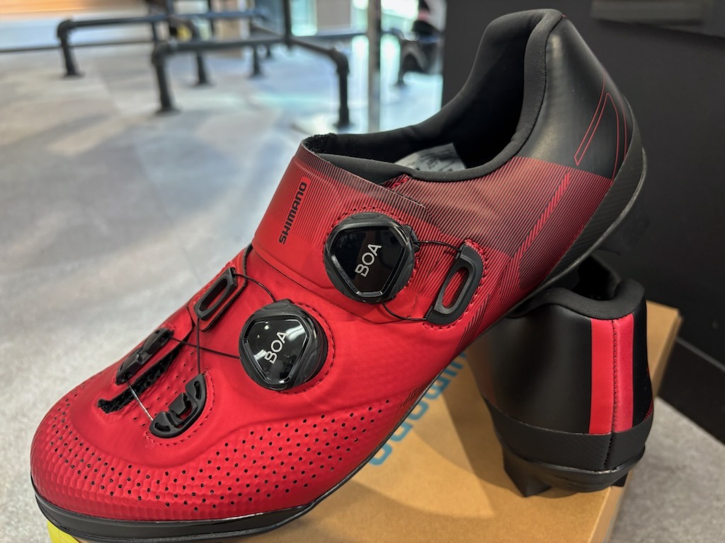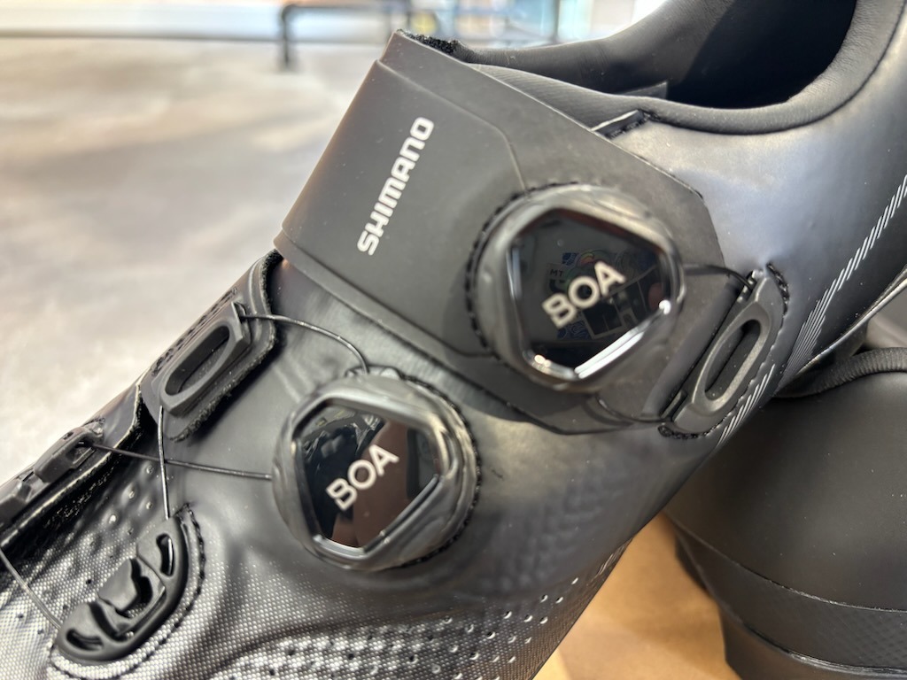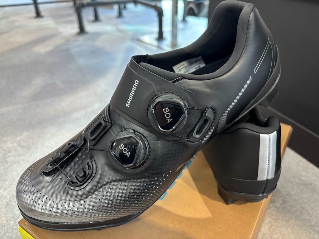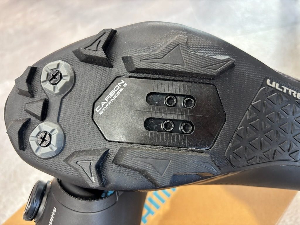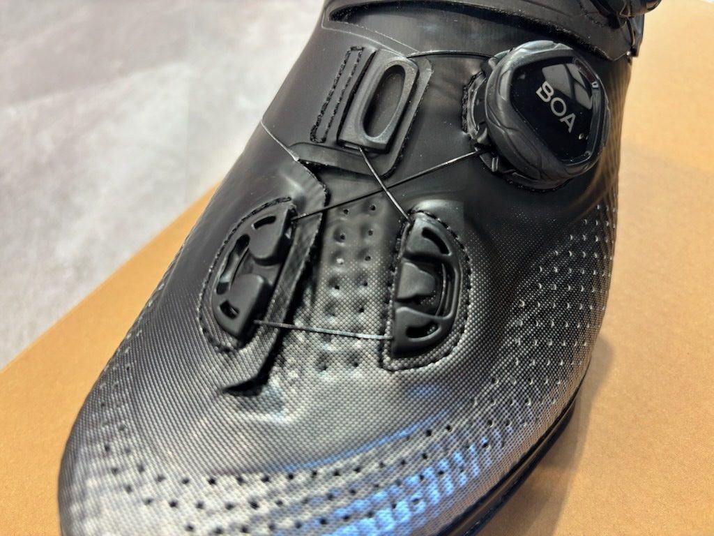 2つ穴のSPDシューズとなります。ペダルエリアはカーボンソールとなっておりスパイクピンもつけれるためシクロクロスなどの競技にも対応できます。