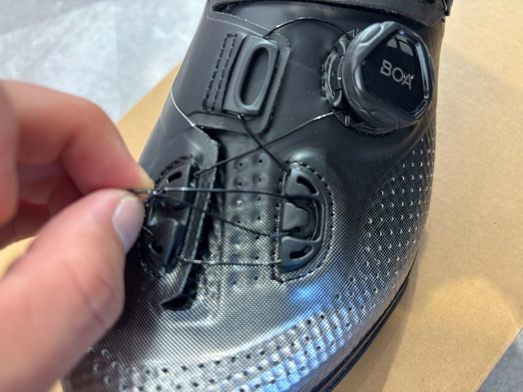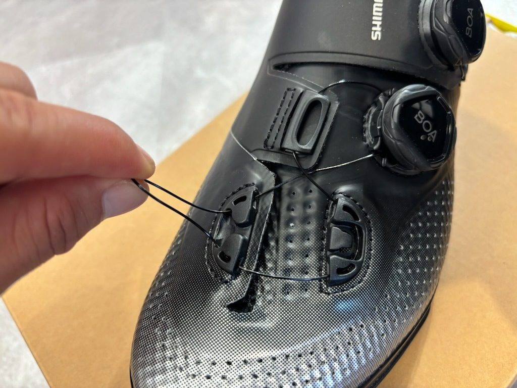 XC702の後継XC703では廃止されたパワーゾーンシューレースガイドがありワイヤーをかけ替えることで前足部分のフィット感を変えることができます。