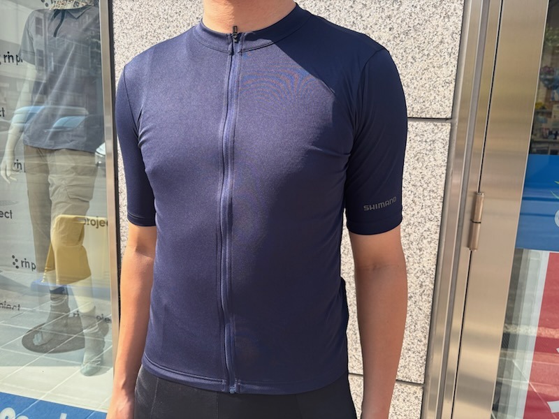 左袖にSHIMANOロゴだけのザ・シンプルな夏用ジャージ!初めてのサイクリングジャージだし派手目なデザインはちょっと、、、なんて方にオススメ!再生ポリエステル100%使用しソフトな肌触りと染色生地が特徴です。カラー違いとして