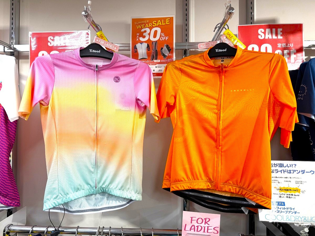 ソルベカラーやビタミンカラーの発色の良さはイタリアブランドならでは。色がきれい、可愛いと好評いただいたCASTELLIやBicycle Lineのレディースジャージが20%OFFです。残り僅かなのでお早めに!
