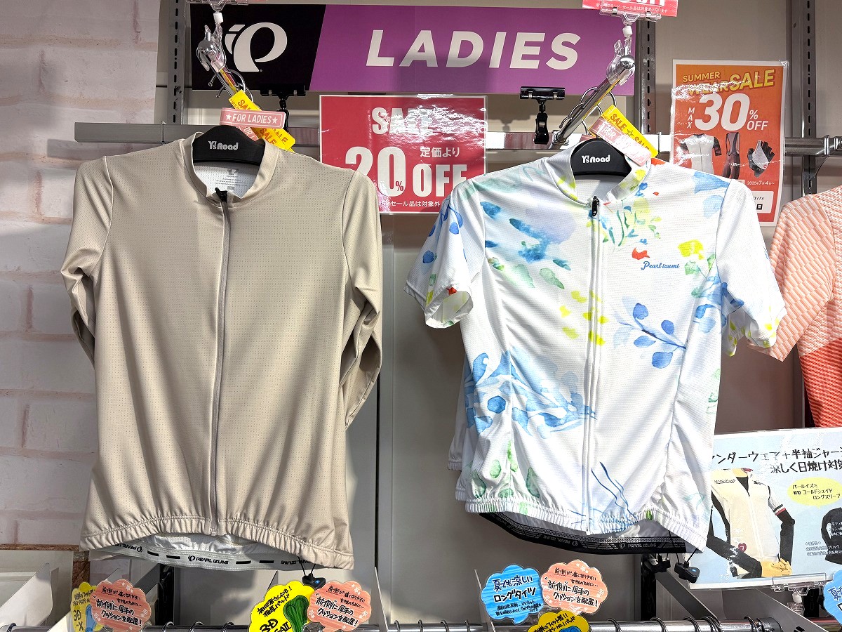 サイクルウェアの定番、パールイズミのジャージもSALE対象!毎年異なるデザインが魅力のプリントジャージに加え、日焼けが気になる方向けの長袖ジャージも20%OFFです!