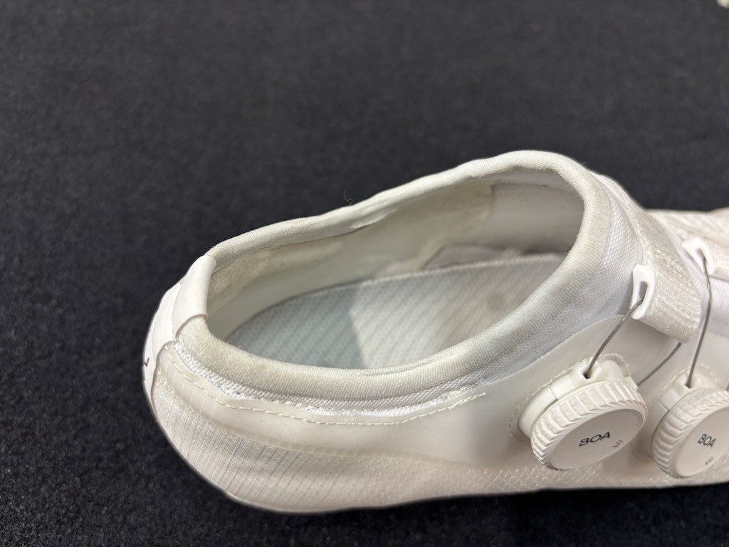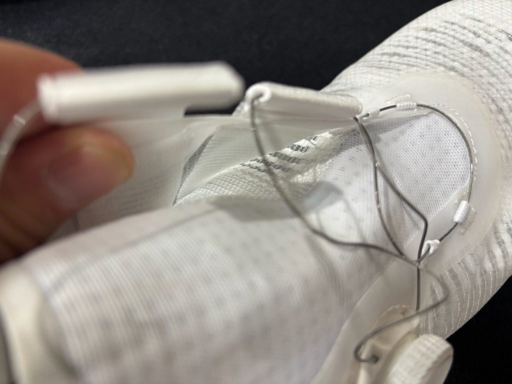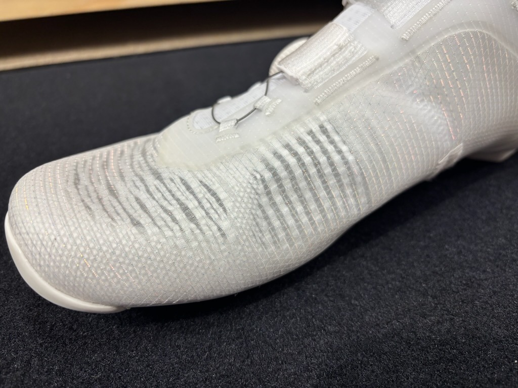 ラストも変更されておりトゥボックス、つまりつま先が今までのレギュラーフィットに対して幅、高さともにゆとりを持たせています。これにより足の自由度を高め高強度でのレース、ライドや長距離ライドでも快適性を維持できるような設計となっています。
