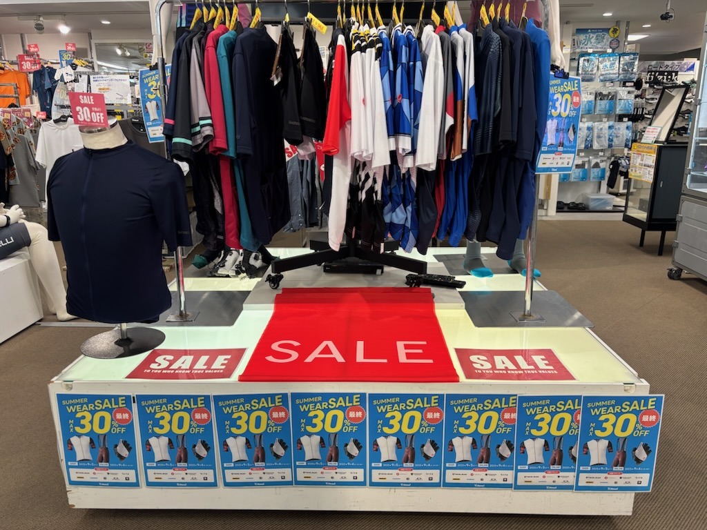 夏物ウェアのお値引き率がアップした最終SALEが始まっています!