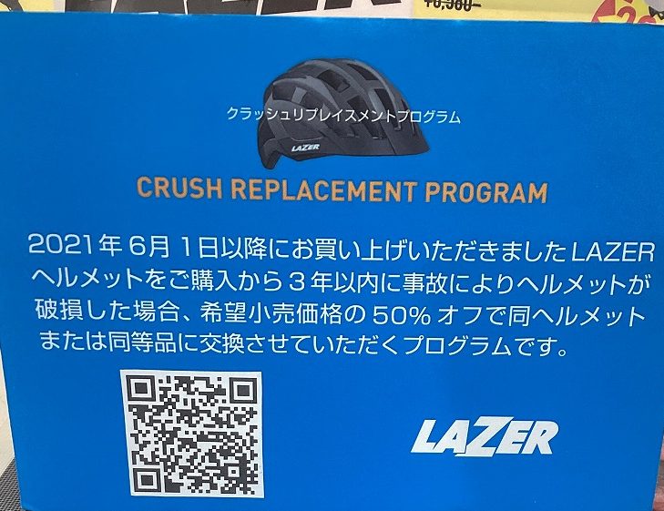 今ならLAZER全品セール価格です。それにプラスで現在ヘルメット買い替えキャンペーンというイベントを開催中!!