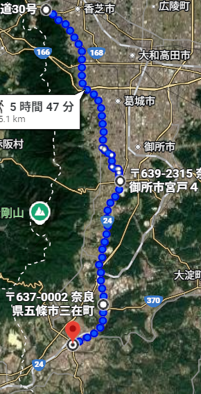東大阪民なら良く知るリビエールあたりで集合してスタート、大阪教育大の前を通る165号線を通って五條市まで向かいます。