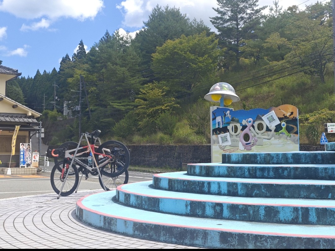 1時間半ほど登り続け頂上の道の駅吉野大路大塔に到着、天文台が近くにあるのでUFOの看板がありますね。