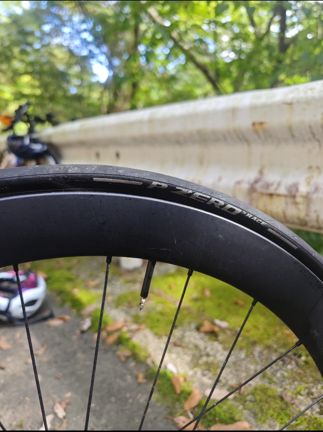 さらにパンクという追い打ち、路面の状況は最悪です車一台分の幅しかなく外側は路面が大きく荒れワンミスで川に落ちそうで内側は万が一対向車が来たら危ないので気を付けて外側を走るしかありません。