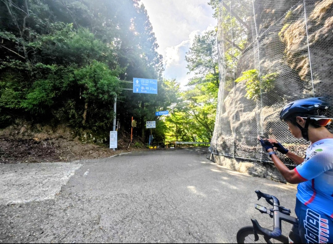 ここから40Kmは自販機一つなく給水手段は湧き水のみ(飲めるか怪しい)ボトル2本体制でしたが登り切った当たりで水も底を尽きる事態に!