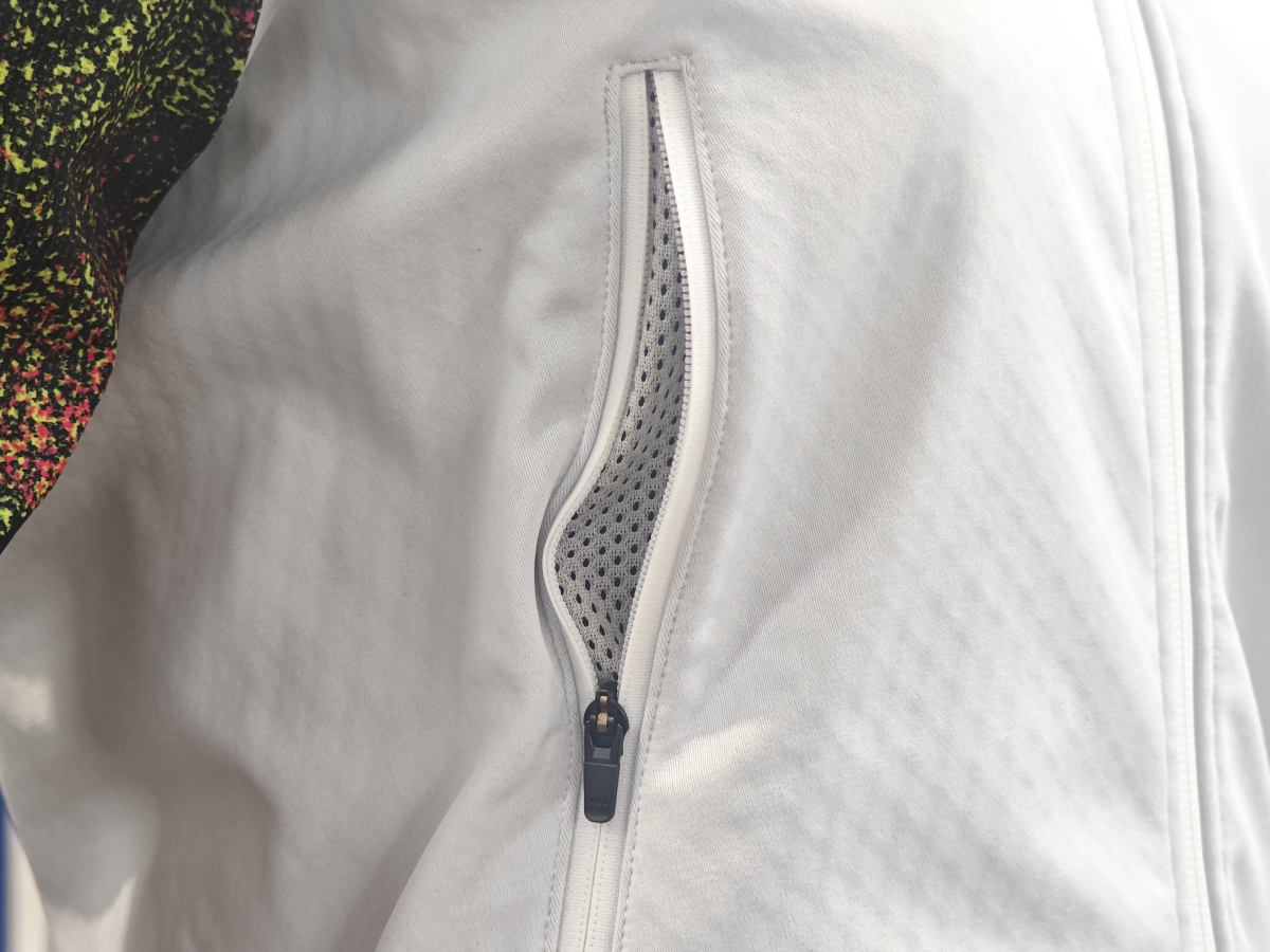 身体があったまってきて暑く感じだしたら前面のベンチレーションを開けて温度調節が出来ます、閉じていればポケットとしても使用できます。
