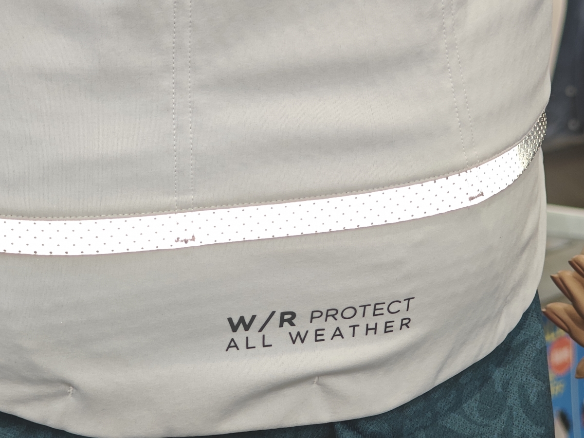 レインウェアと同等の耐水圧10,000mmの生地を使用しているので雨にも強いのですが、全身にその生地を使用しているわけではないので完全防水ではなく耐えられるのは軽い雨程度までです。