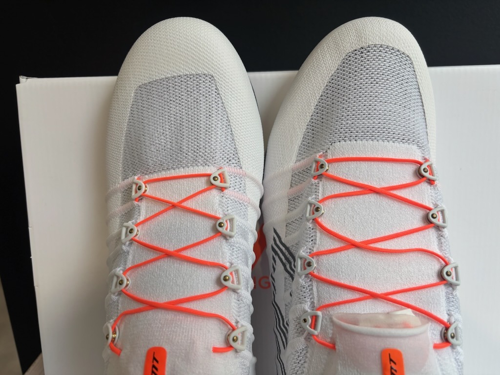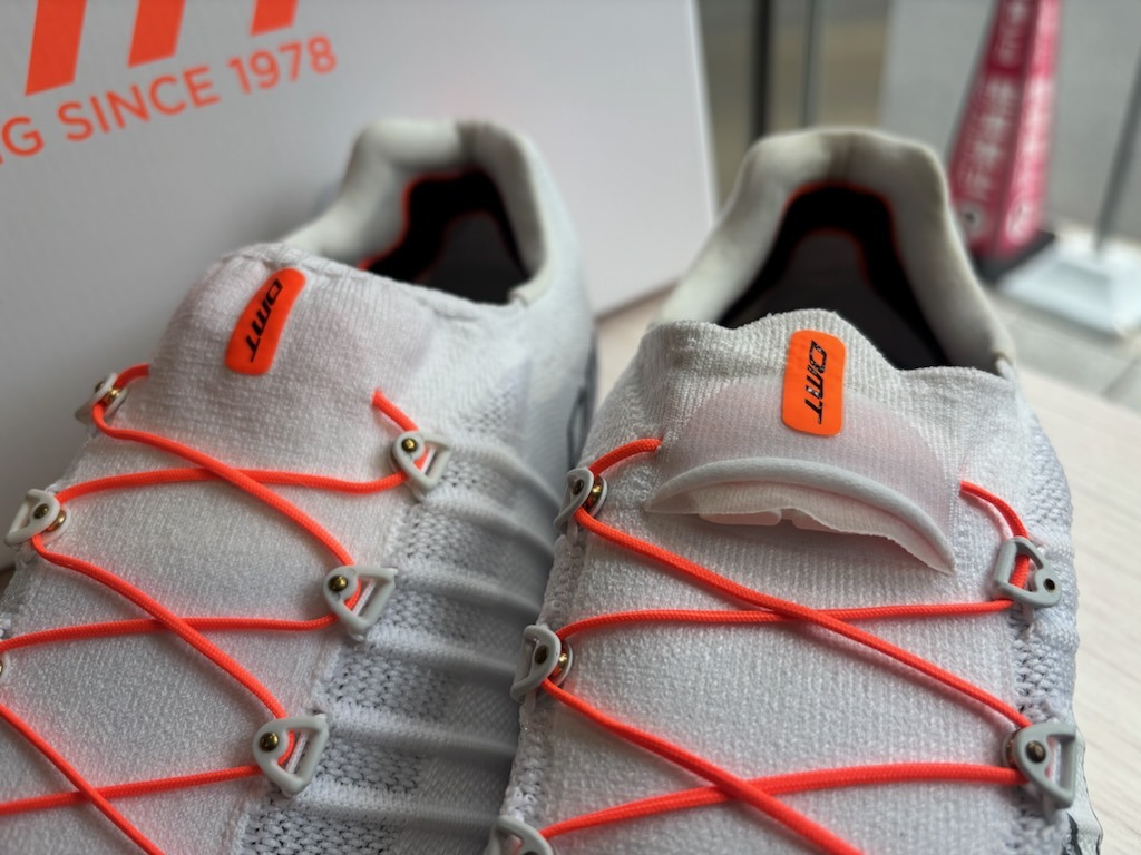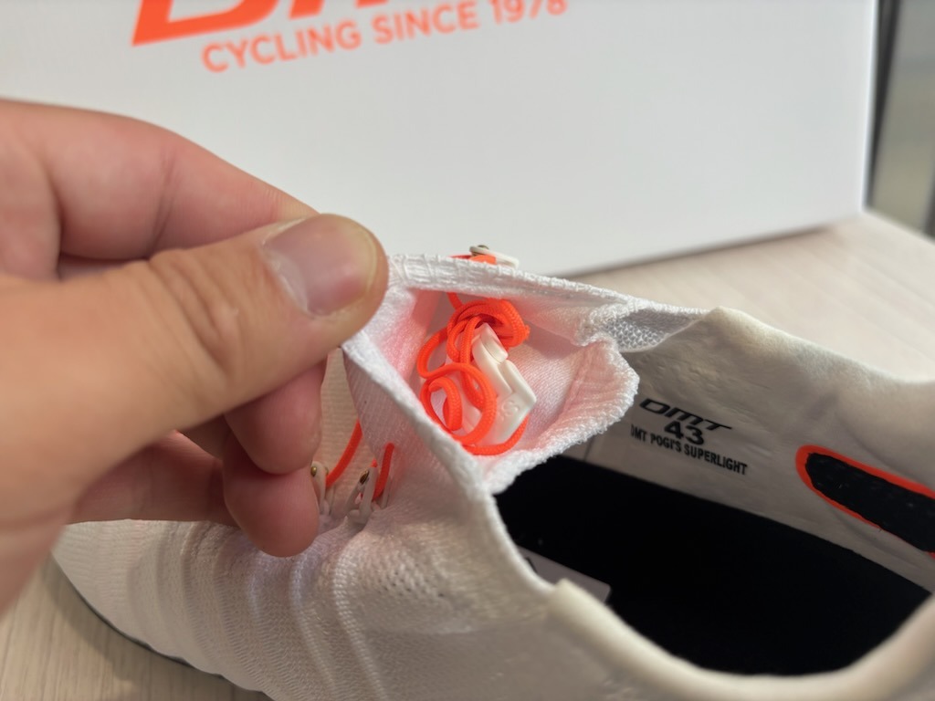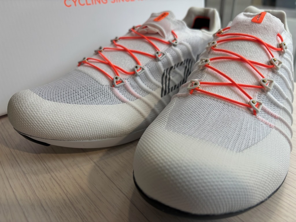 (左が新作、右が前作)最後はトゥーボックス、つま先です。前作より丸みを帯びています。FIZIKのフラグシップシューズVEGAも同じようにつま先部分に若干ゆとりを持たせることで快適性を確保しています。長時間強度の高い乗り方をするプロ選手にとってフィット感も大事だがより快適性をという事かと思います。ゆとりを持たせているからと言ってフィット感が悪いというわけではございません。