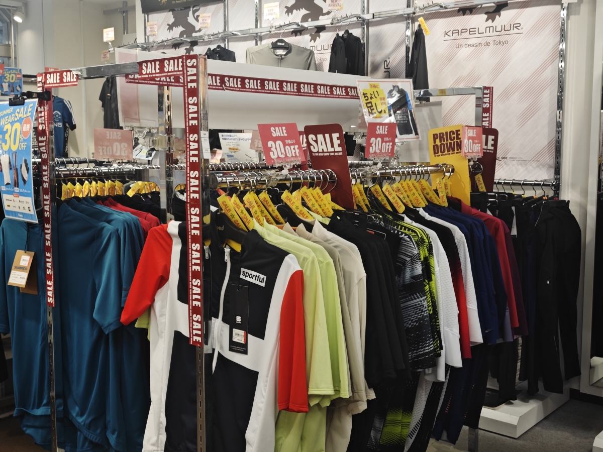 大阪ウェア館は関西随一のサイクルウェア在庫量!