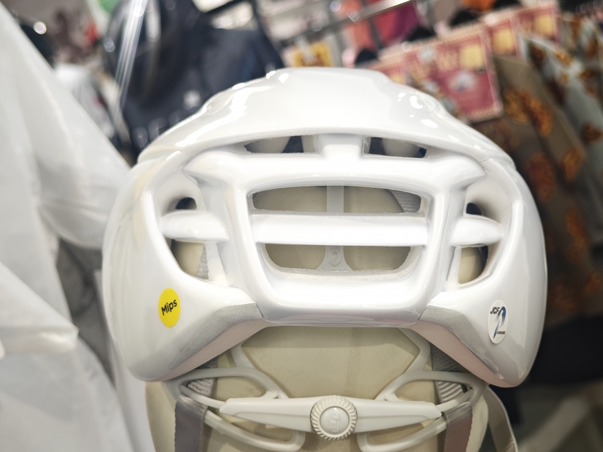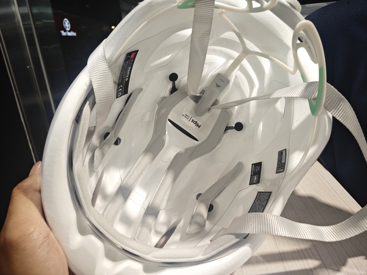 安全面ではMIPSを搭載し回転衝撃吸収にも優れます、中まで真っ白ですね