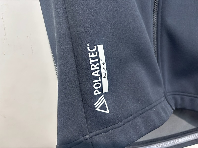 外層にcastelli独自のPolartec® AirCoreを使用し風や雨を防ぎつつ通気性もしっかりと確保。