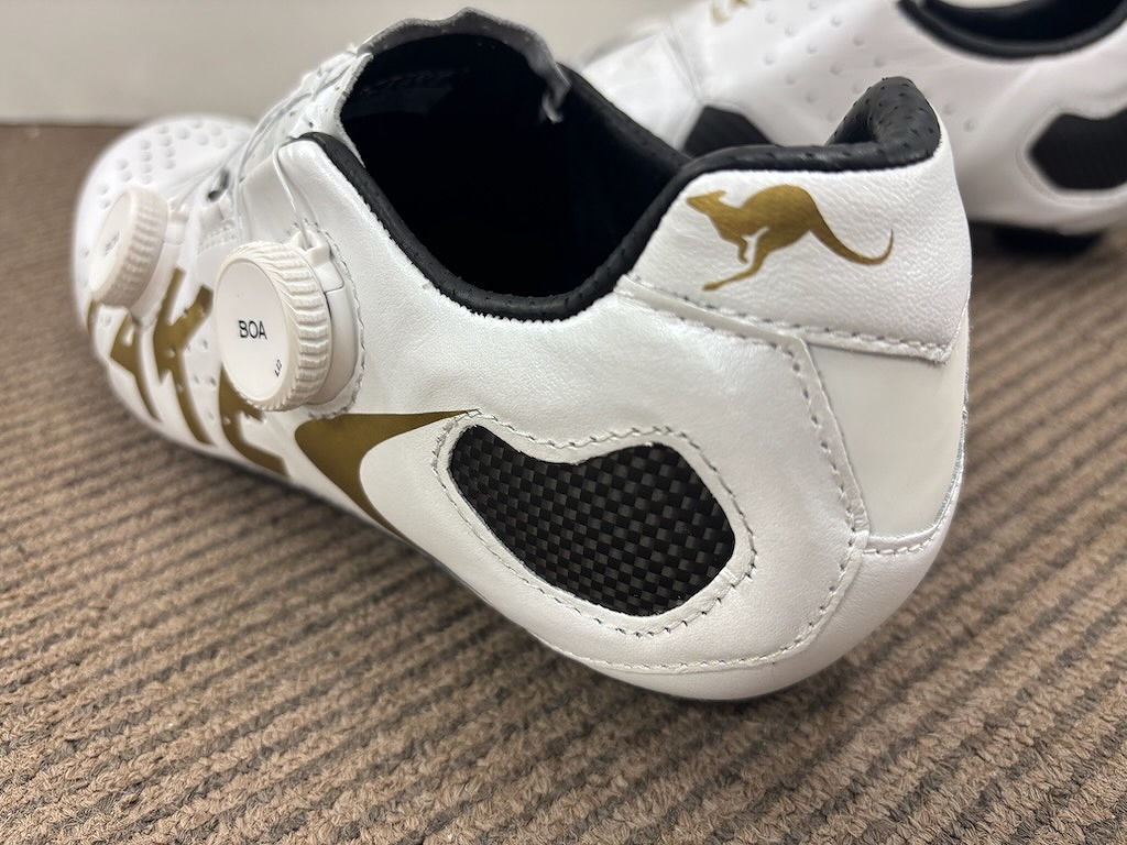 踵のホールド感や足に沿うようなフィット感が素晴らしいシューズ。アッパーはカンガルー革が使用されておりアウトソールは中空2層式のフルカーボン。踵は熱成型が可能です。究極の1足をお求めな方はこちらをお試しください。