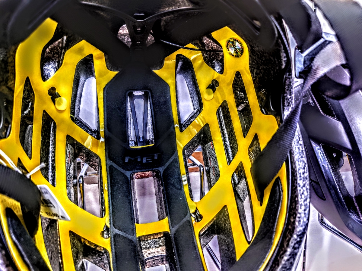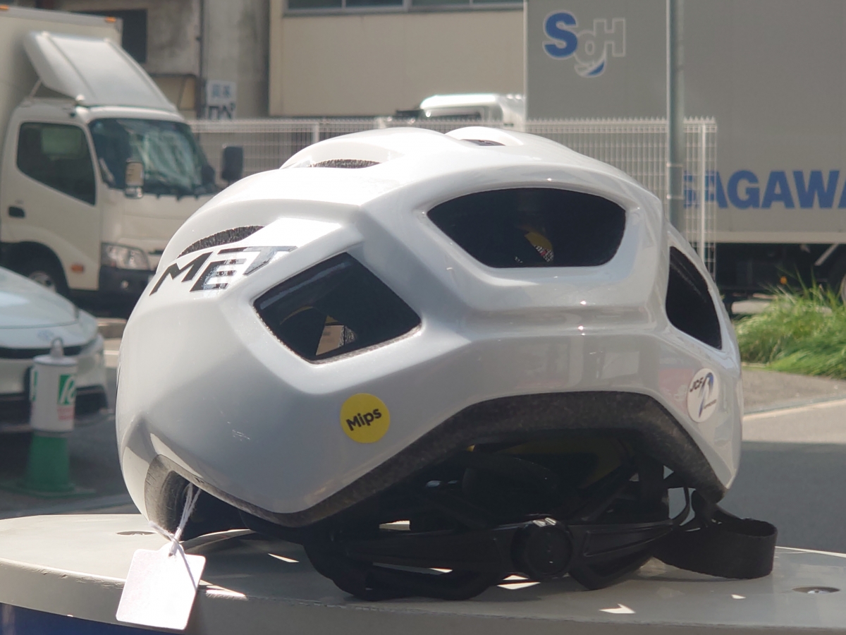 黄色いステッカーがMIPS搭載の印です、ヘルメットを選ぶ際は参考にしてみてください。