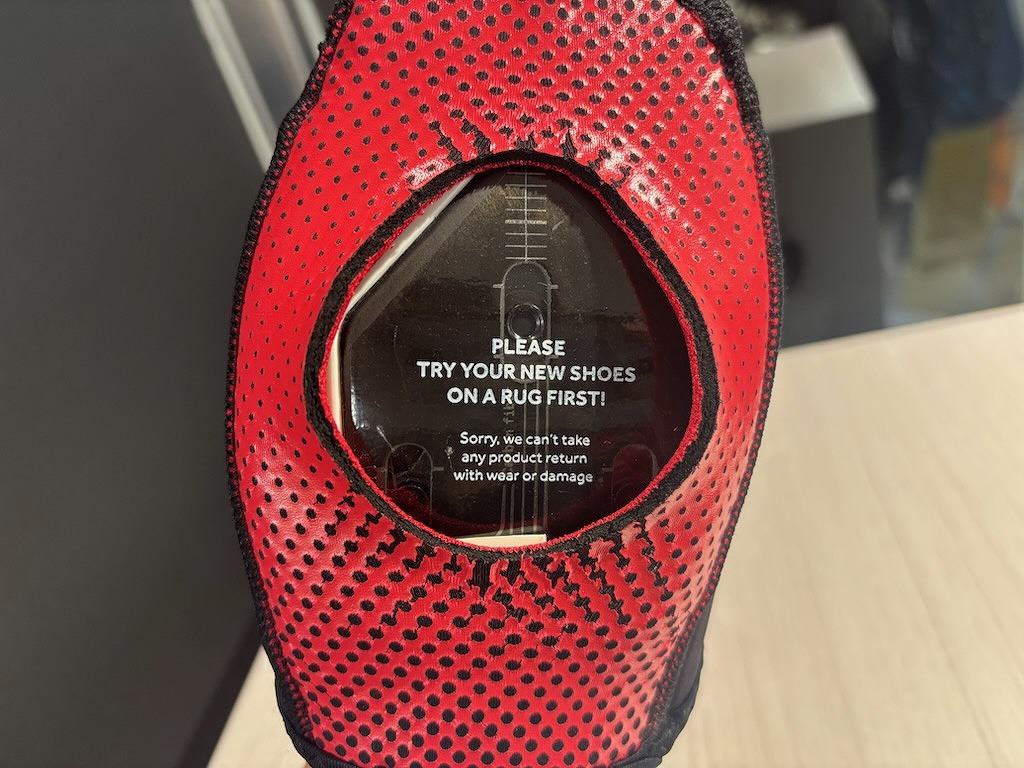 裏側のこの穴からクリートを出す形になります。便利なアイテムなのですがクリートを出す穴の周りは特に補強されていないため仕方ないのですが通勤でも乗る僕は昨年使用していた物の穴がどんどん大きくなっていました。
