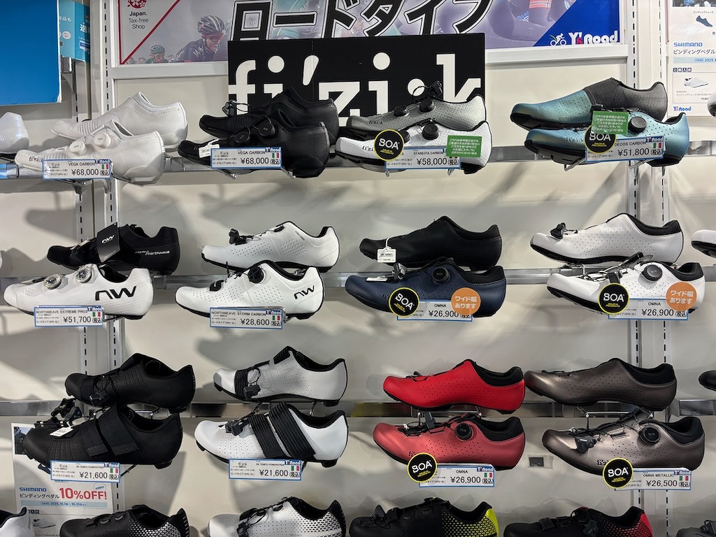 店頭にてご覧ください。またFIZIKシューズはメーカー在庫があれば無料で試着取り寄せができるので気になるモデルがあれば店頭スタッフにお声掛けください。