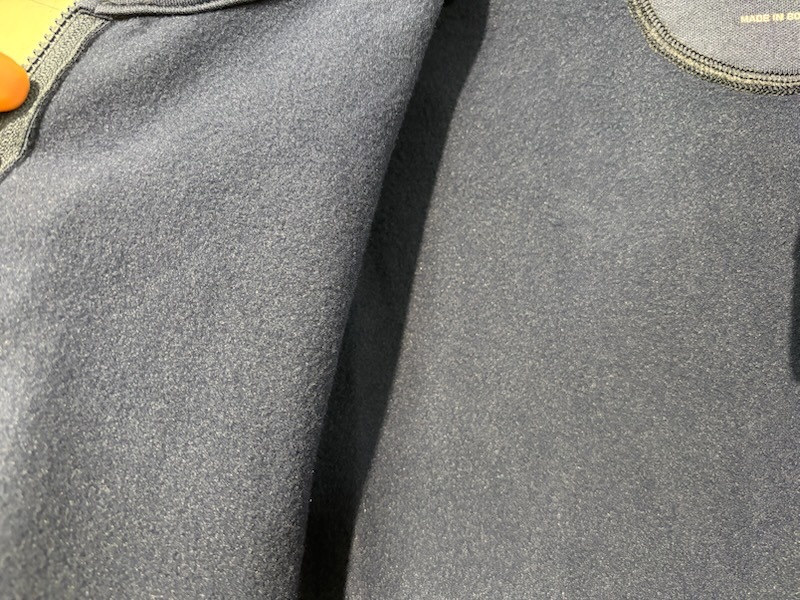 裏起毛フリース素材は保温性に優れつつ伸縮性もあり袖を通してもらうとわかると思うのですが生地感かなりやわらかく着心地◎サイズ感はタイト目ではなく着やすい1着となっています。当店在庫カラーは