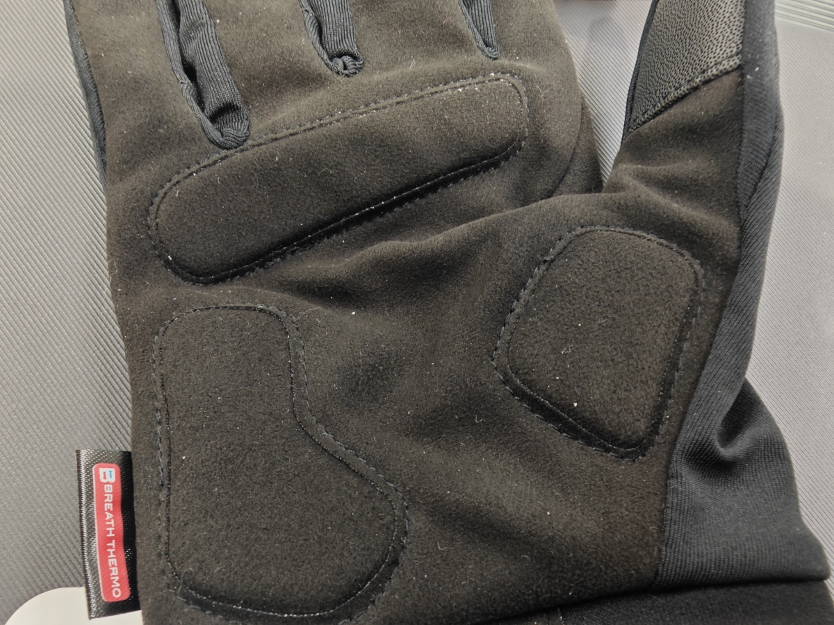 パッドは3か所に設置され程ほどの厚さになっていますが冬用グローブはそもそも生地が分厚いので夏用よりクッション性が少し高く感じます。