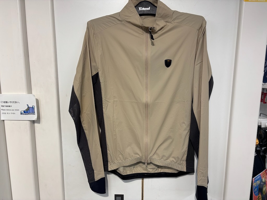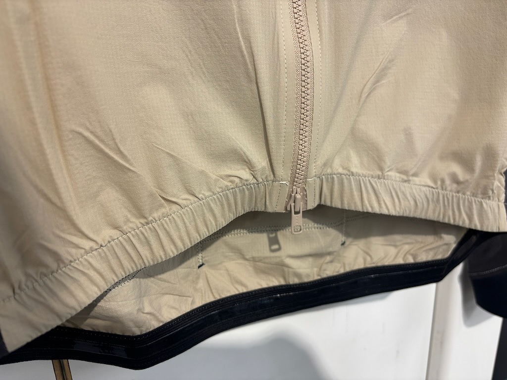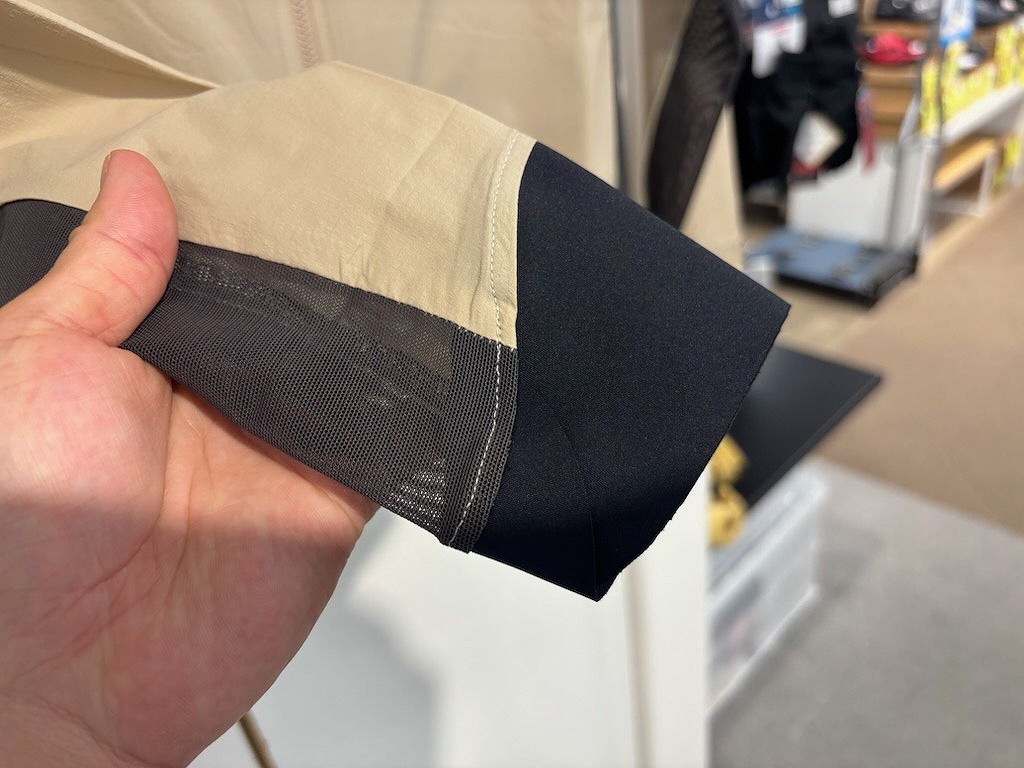 袖口は冷たい空気が入りにくいよう手首にピッタリと沿うようになっています。サイズ感はそこそこタイト目でバタつきにくい印象ですがストレッチ性のおかげで着にくいとかはありません。在庫サイズは