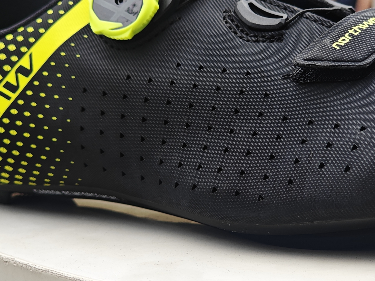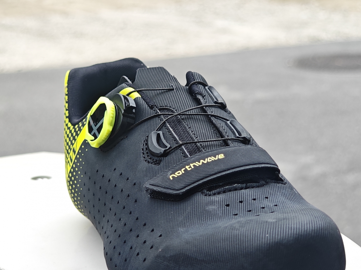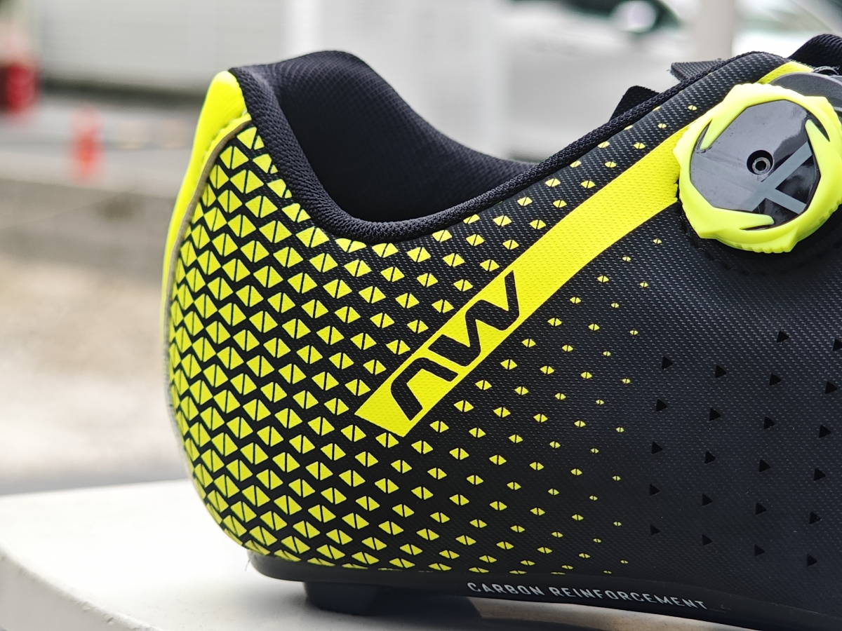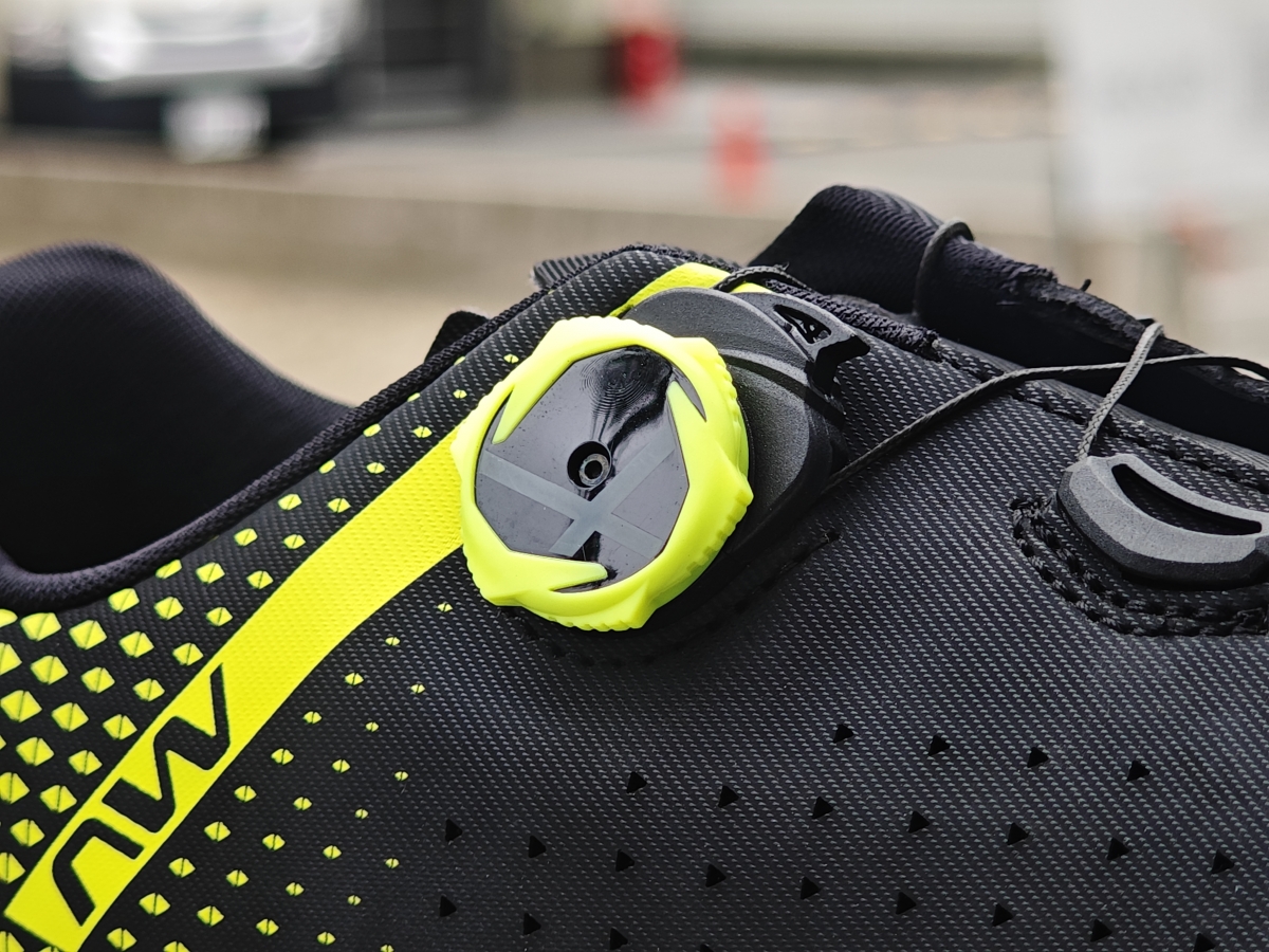 ダイヤル式ですがよく見るBOAではなくNorthWave独自の物を使用しています、シューズの色に合わせてありますね。