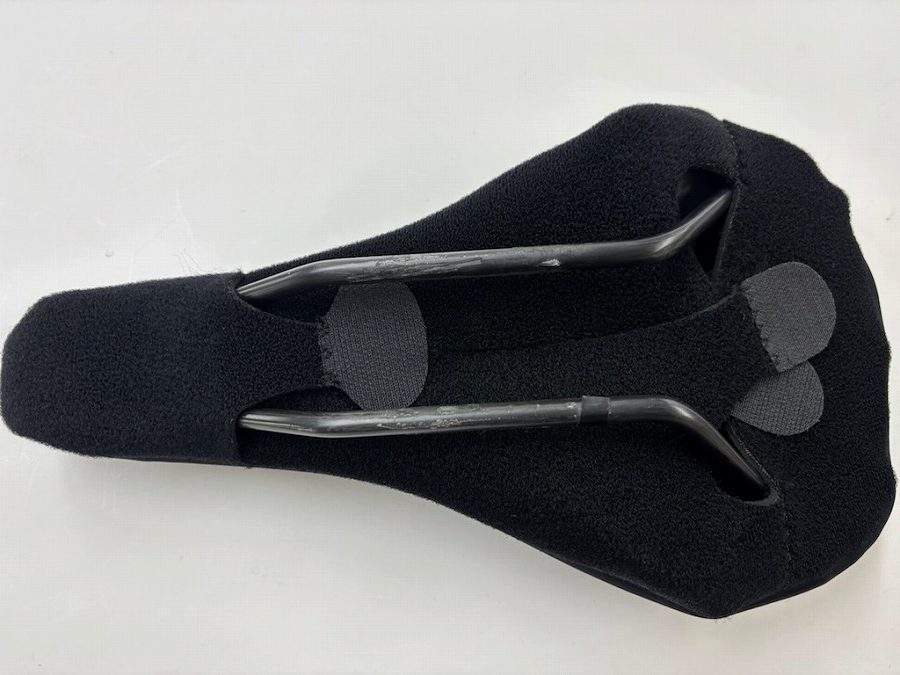 このようにベルクロで留めるタイプなので装着も簡単です!注意点といたしましてサドルの全長が25~28cm,サドル幅が13~16cmのサドルにのみ対応です。またサドルの厚みが厚すぎるとベルクロが届かないのでここも注意が必要です。