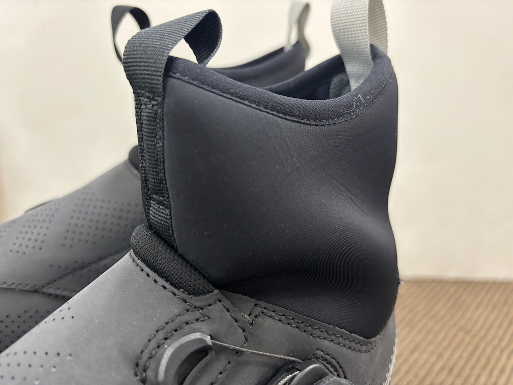 足首まで覆うようになっており冷たい風が入りにくいようになっています。ネオプレーン素材が使用されているためペダリングの邪魔をしません。