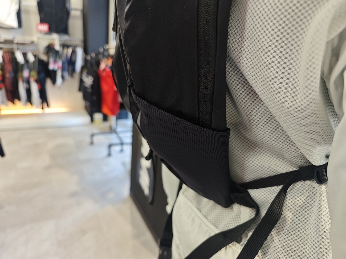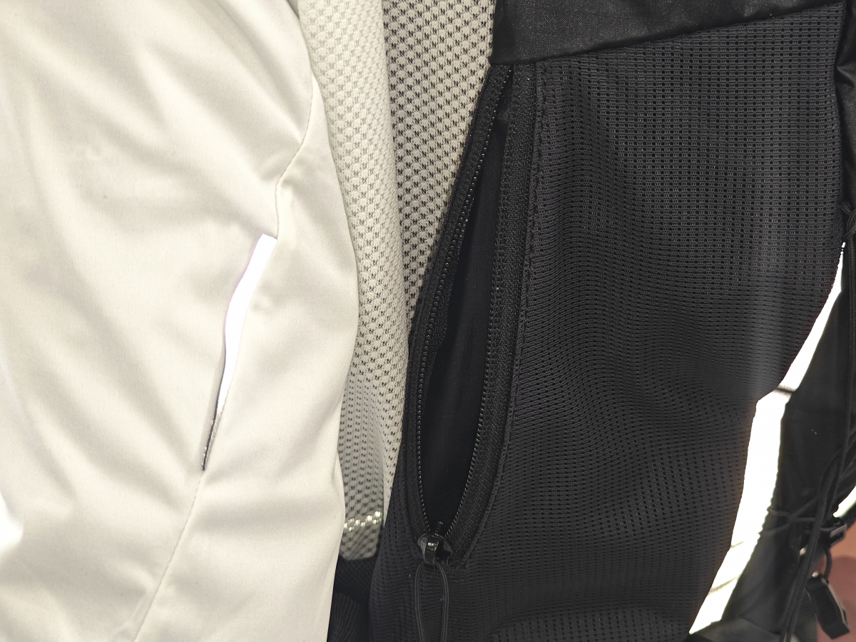 右にはメッシュポケット、スマートフォンなどを入れるとすぐ取り出すことが出来ます。