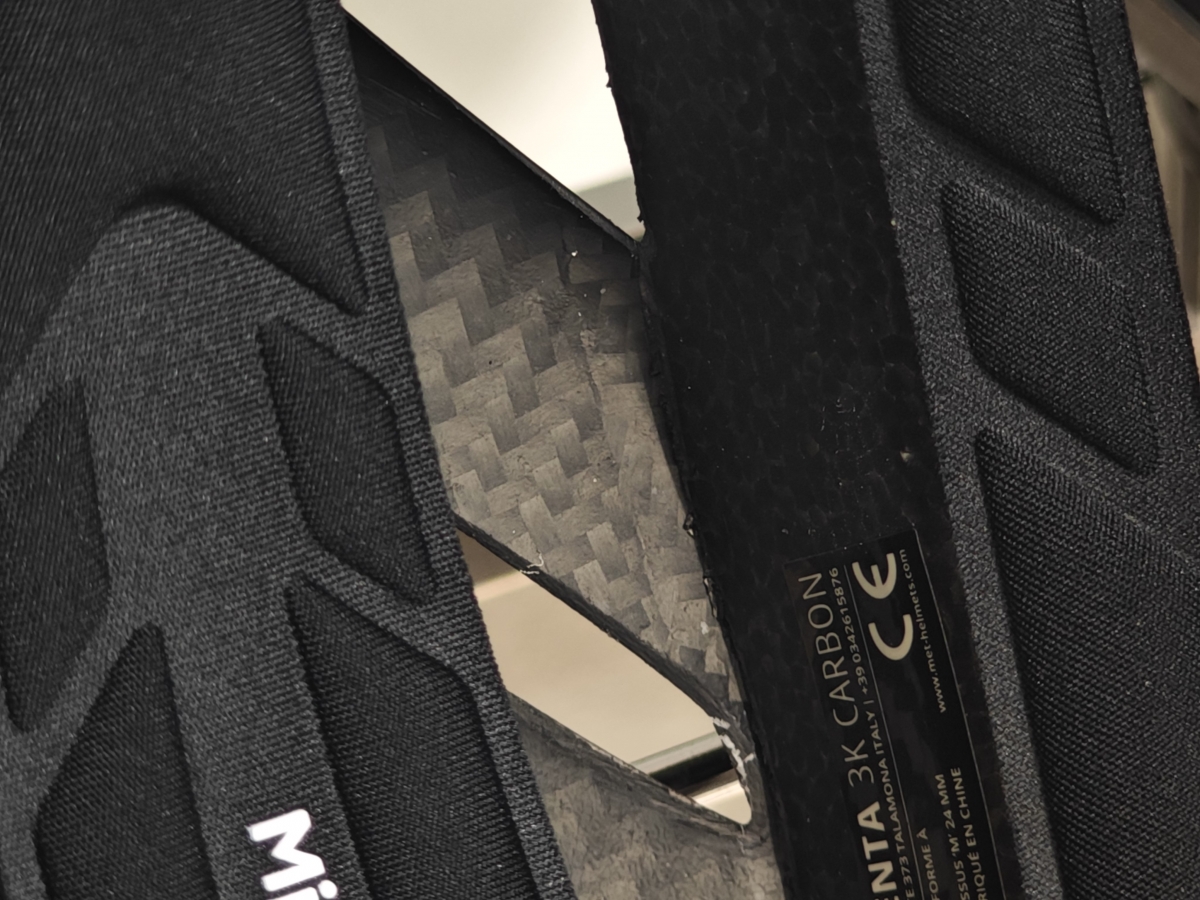 前作ではカーボンの下にもEPSフォームがあったが今作はカーボンだけにしたことにより空間が生まれトータルでは16%通気性が向上。