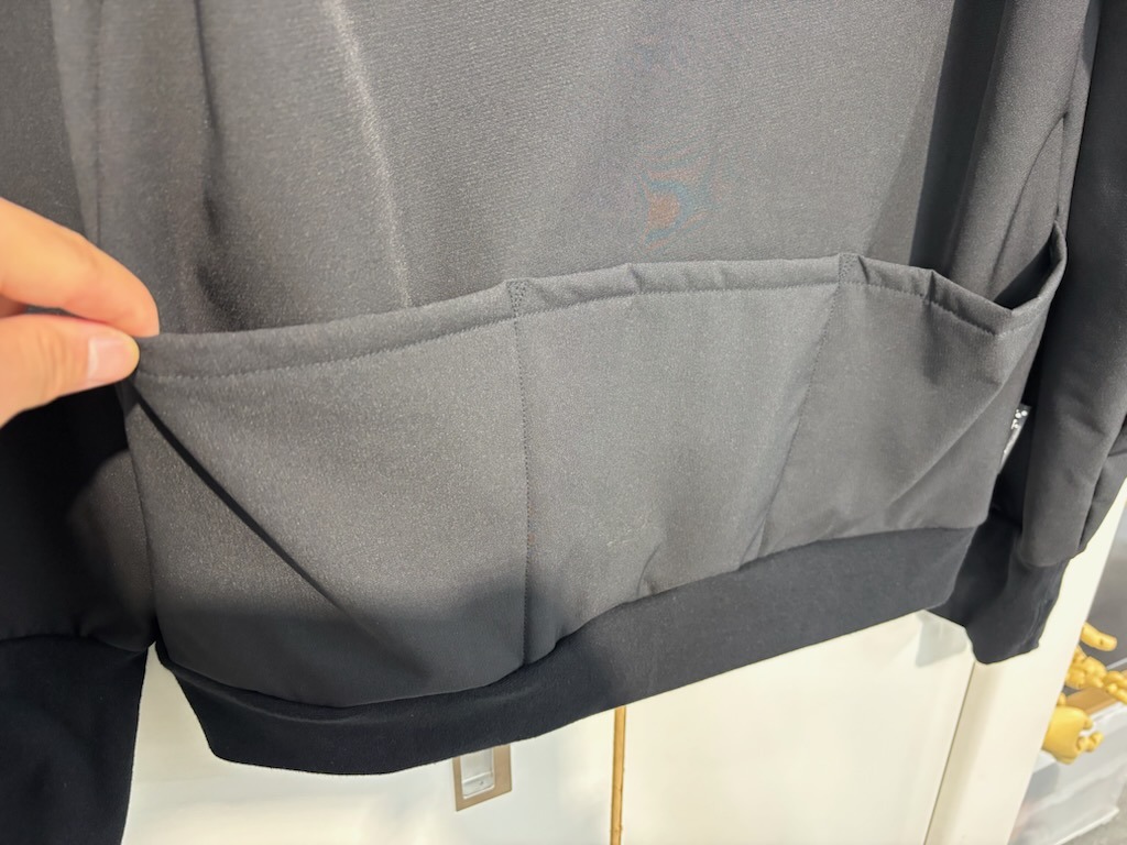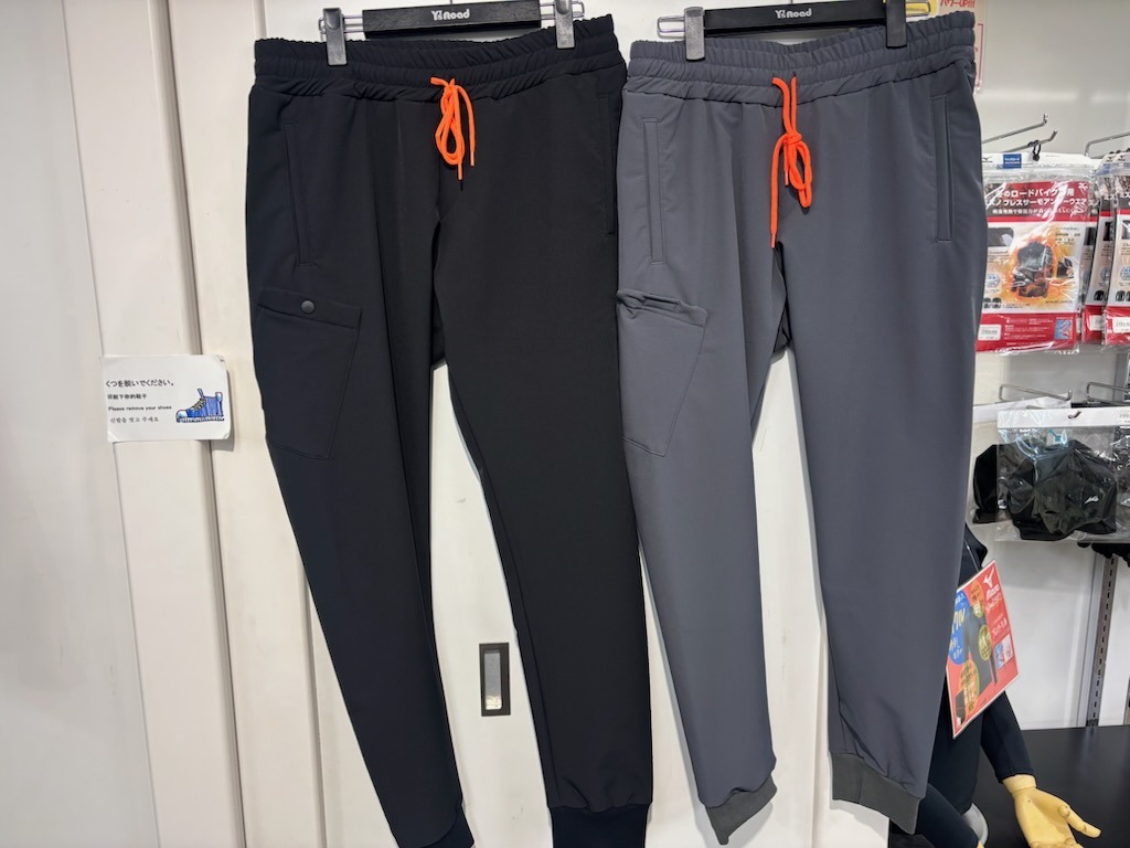 裾はチェーンリングに巻き込まないようスリムな設計になっています。上下ともにグレー、ブラックの2色展開です!