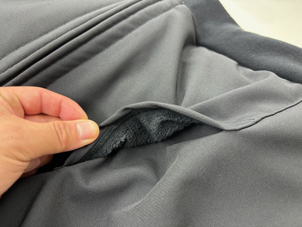 上下ともに裏地に約3mmの毛足の長さのある素材で保温しつつ表側は防風素材で風をしっかりと防ぎます。