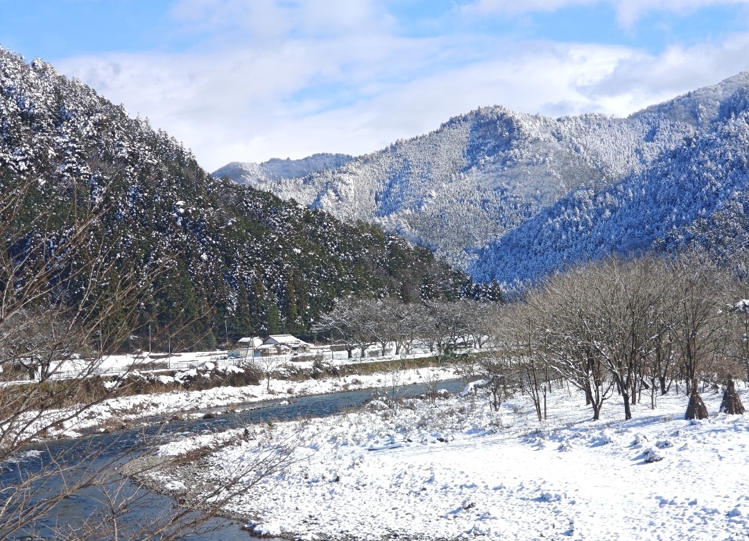 阪神圏では初雪すらまだなのに美山は一面真っ白でした、普通に走ってるだけでも足元はびしょびしょになりますし車に勢い良く追い抜かれると上半身も濡れてしまいますので防水性能は大切ですね。