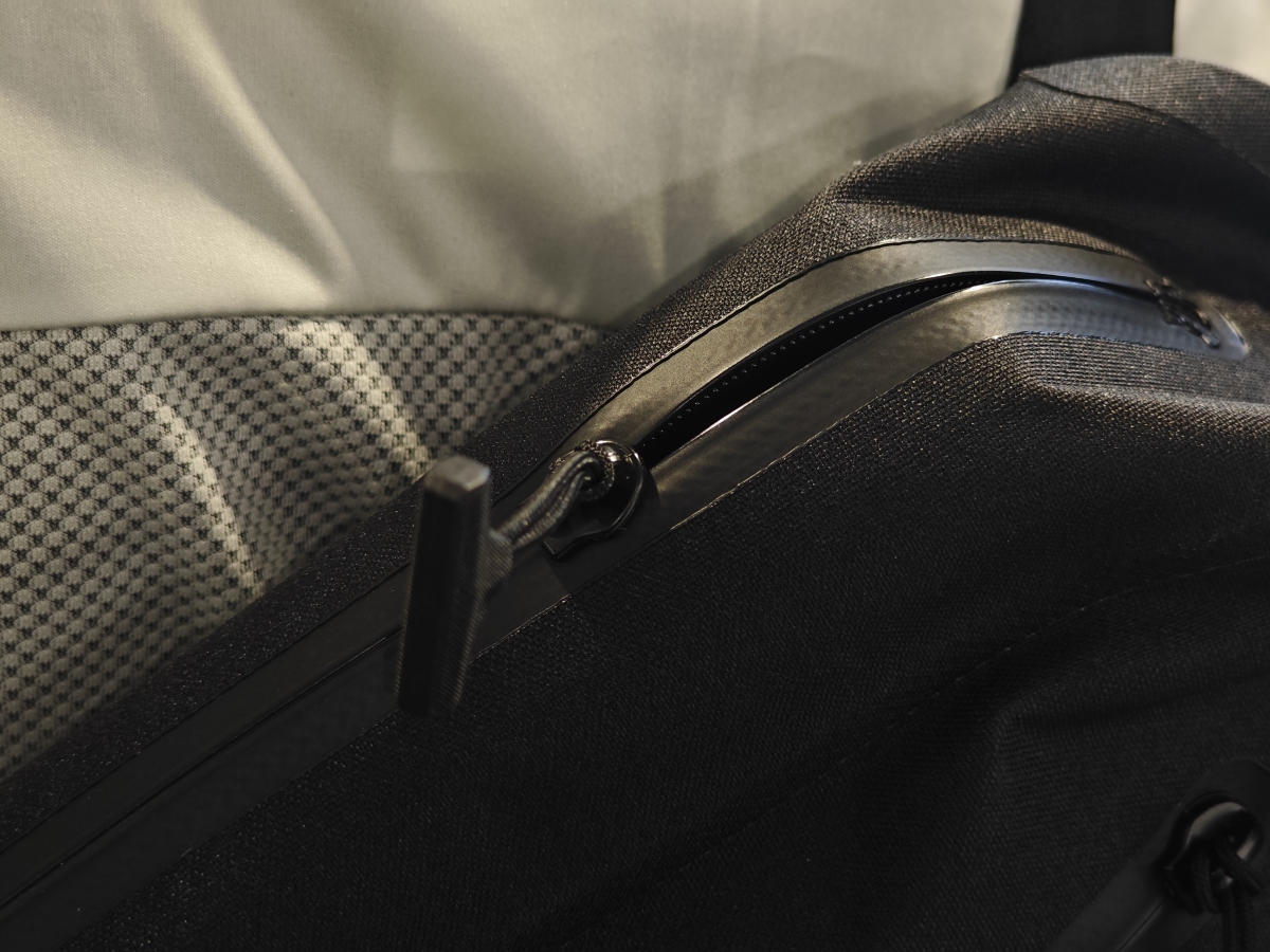 熱圧着された生地、止水ジッパーを採用しIPX7という大雨にも耐える防水性能を得ており梅雨の時期に大活躍。