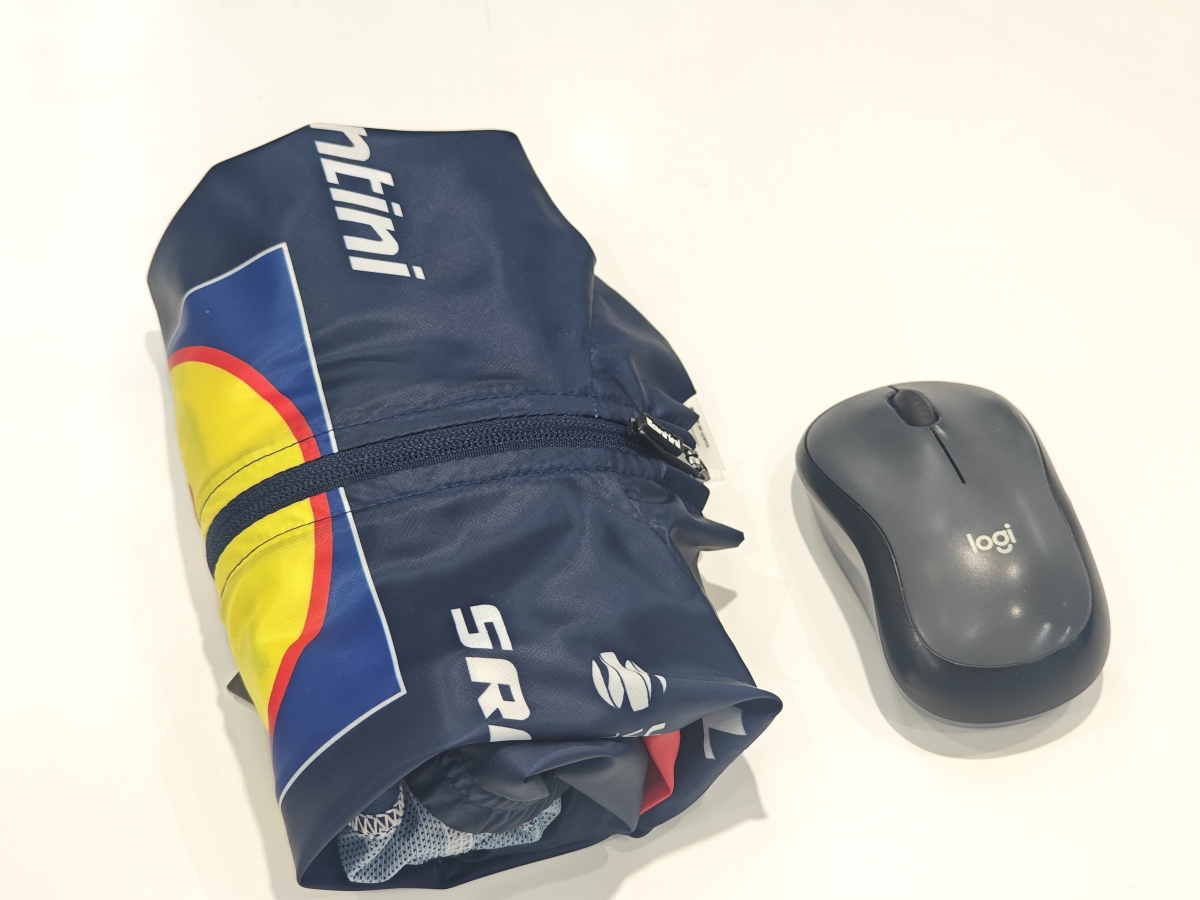 畳むとこんなにコンパクトです、ジャージに入れても邪魔にならずライドに集中できます。