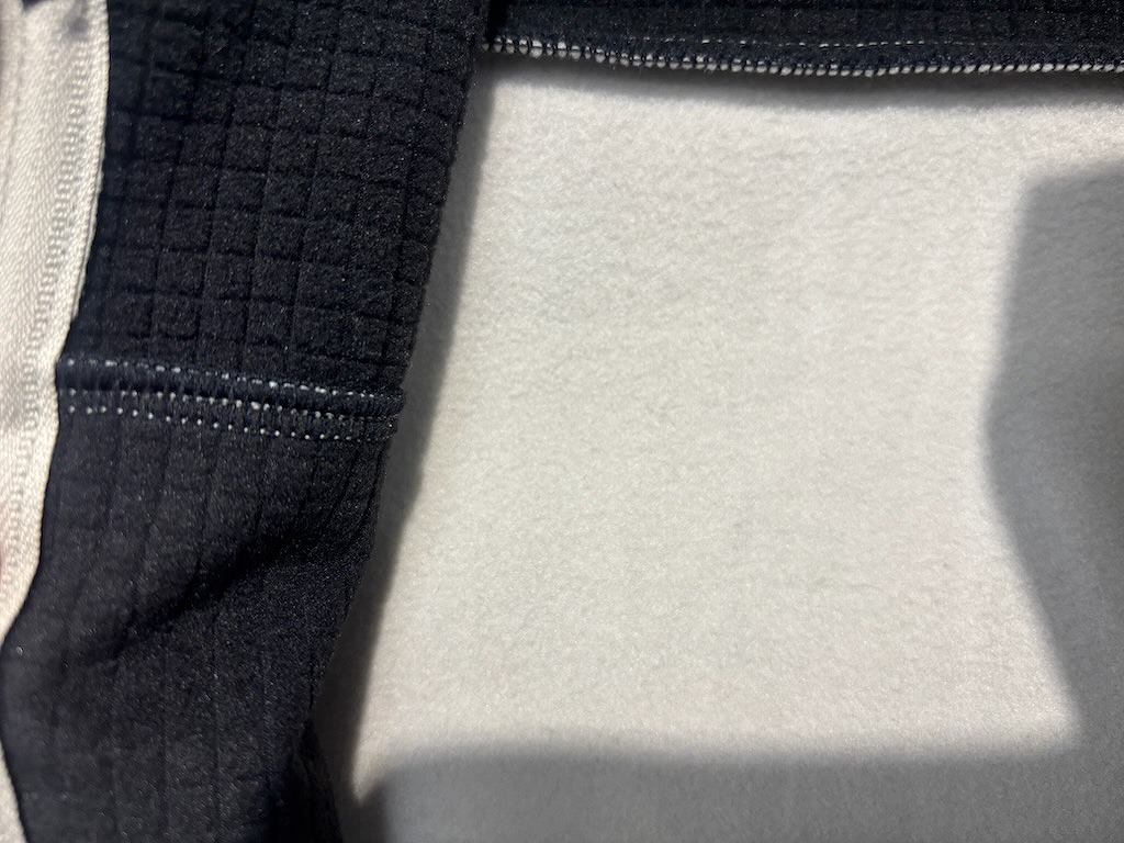 袖口はグローブを着けてもすっきりなシルエットになるように切りっぱなしのデザイン。