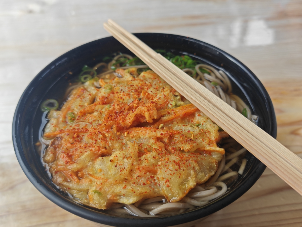 ダムから少し走り道の駅で昼食、天ぷらそば大盛りをチョイス