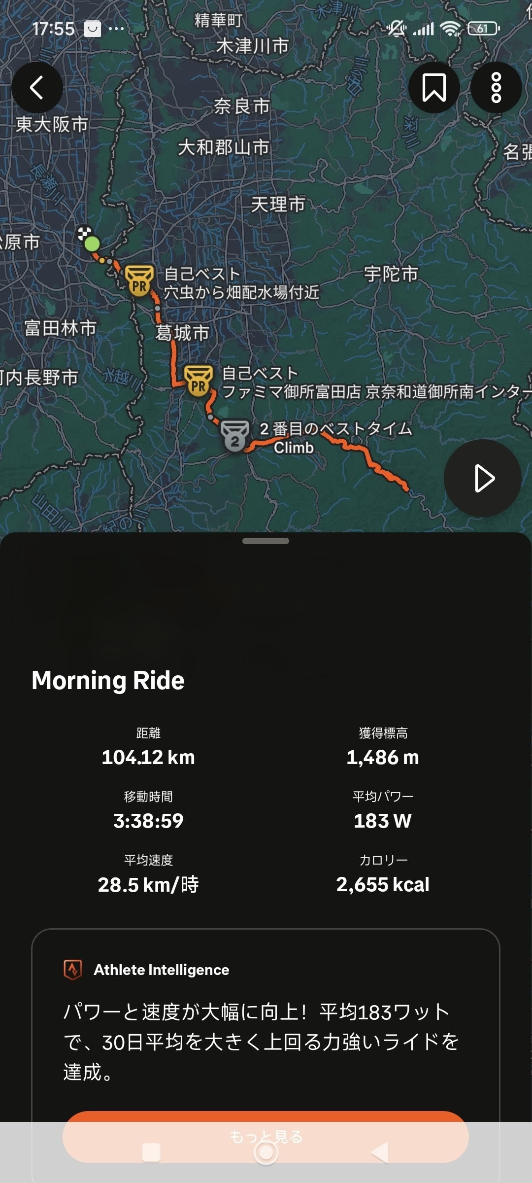 柏原のリビエールから往復100Km走りやすいコースでした。