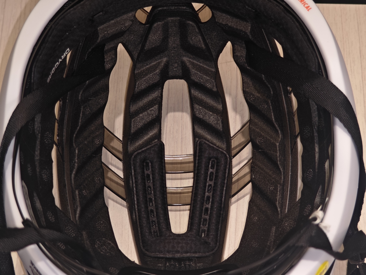 通常頭部が接触する内部に設けた稼働する層が衝撃を逃がしますがこちらはシェルが2層になっておりその部分がずれることで衝撃をより吸収することが可能になっています。