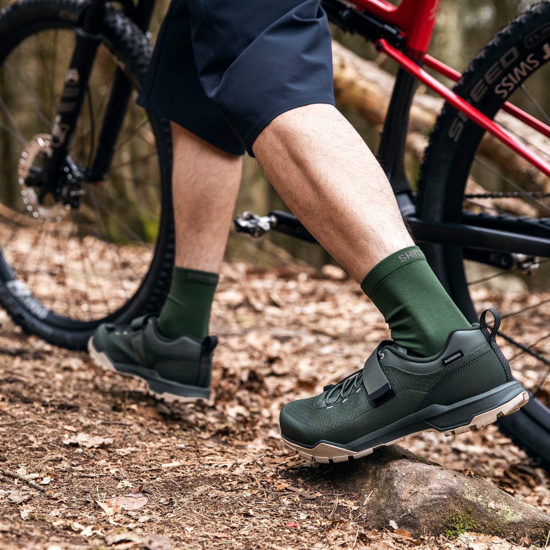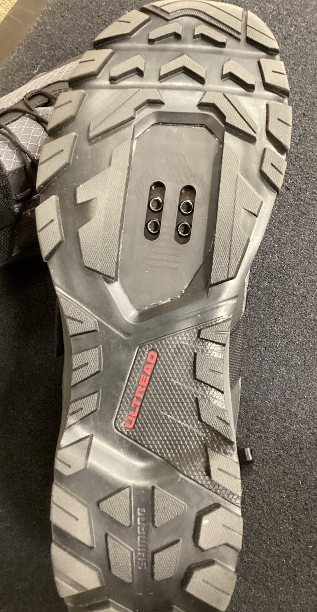 靴の造りも通常のロードバイク向けなどのビンディングシューズと比べるとゆったりとした広めの造りになっています。