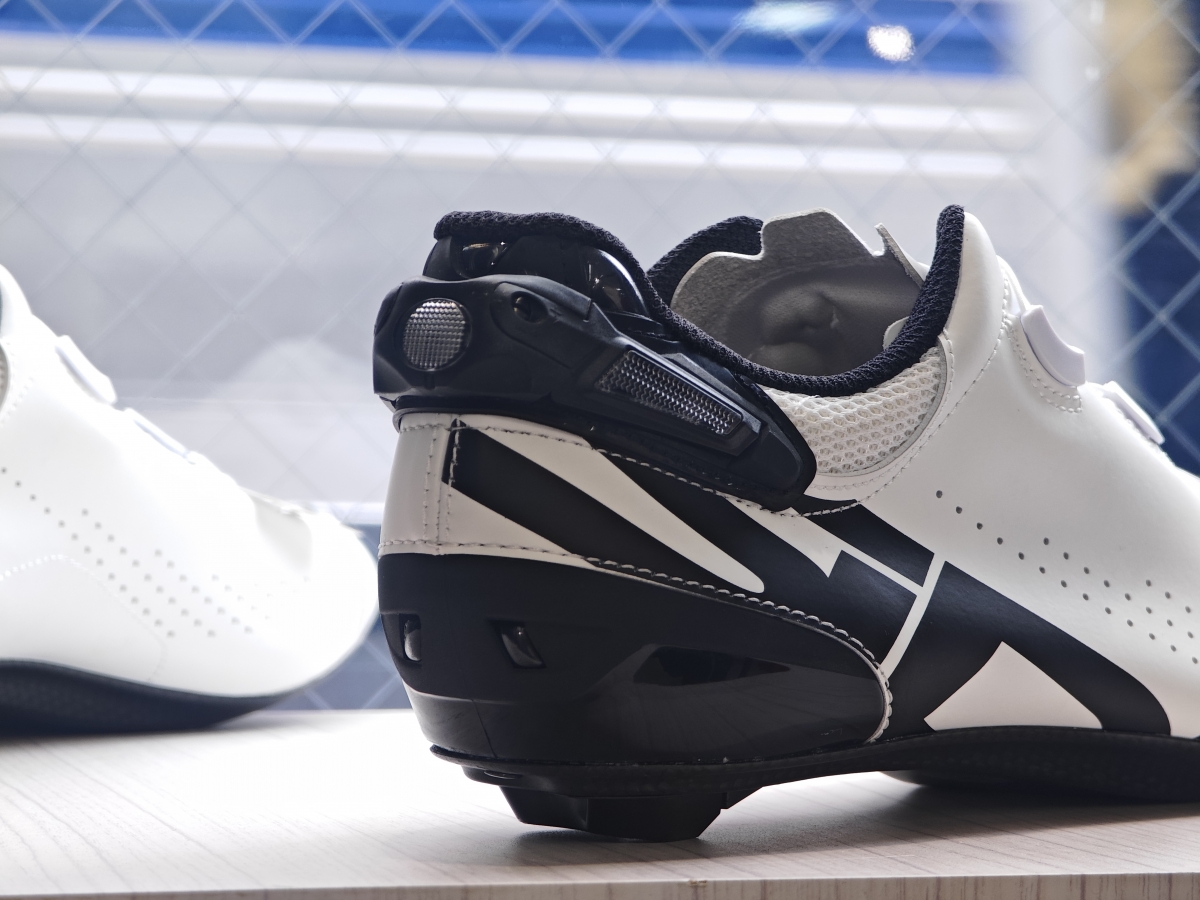 マイナスドライバーで回すこと踵エリアの幅を決められ踵の固定力の最適化が可能です、激しいダンシングでも抜ける感覚がなく思いっきり踏むことができます。