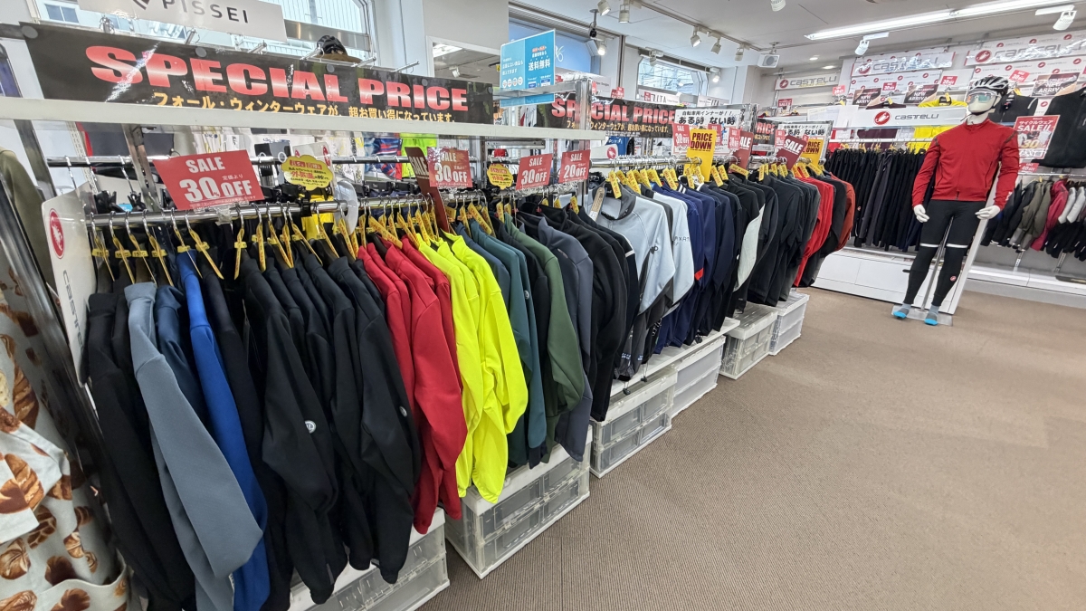 大阪ウェア館は関西随一のサイクルウェア在庫量!