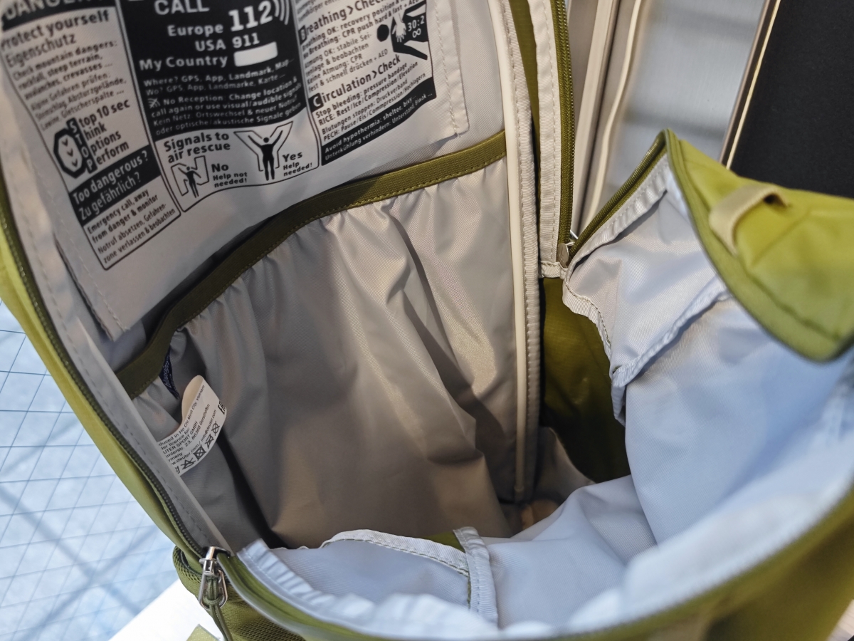 背中側に小さめのポケット、ここにいれておくと混ざらずに取り出しやすいです。