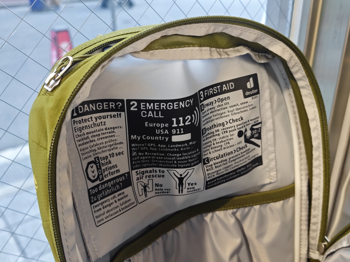 救助方法が書かれています、自分の国の救急の電話番号を書いておきましょう